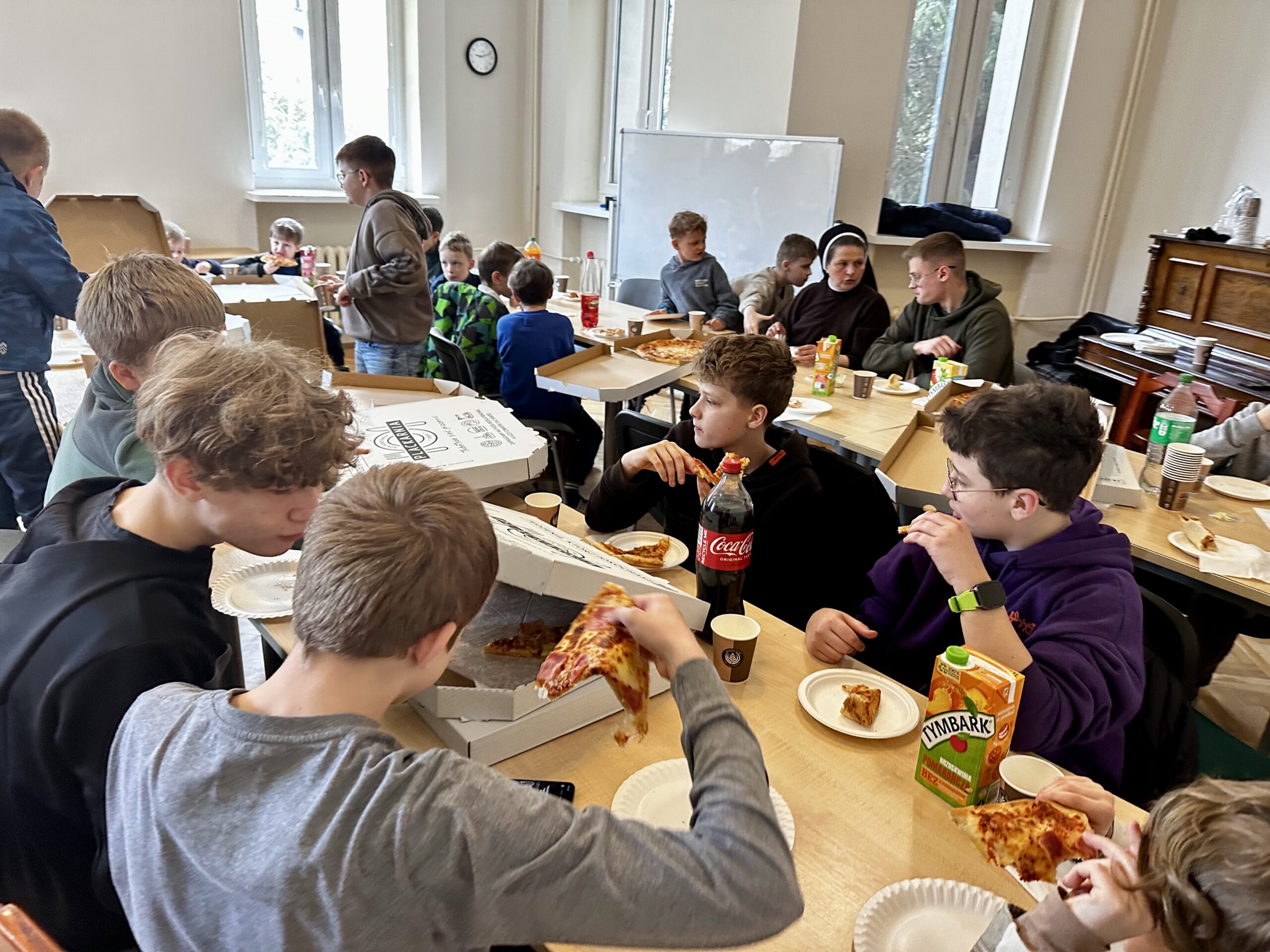 Służba, braterstwo i radość – tak można opisać wspólnotę Liturgicznej Służby Ołtarza. Po intensywnym okresie Triduum Sacrum był czas na umacnianie relacji wspólnotowych przy pizzy. To wszystko 11 kwietnia 2026 r. dzięki opiekunowi ks. Dominikowi Gaładykowi, S.A.C. oraz s. Kornelii Kołodziej.