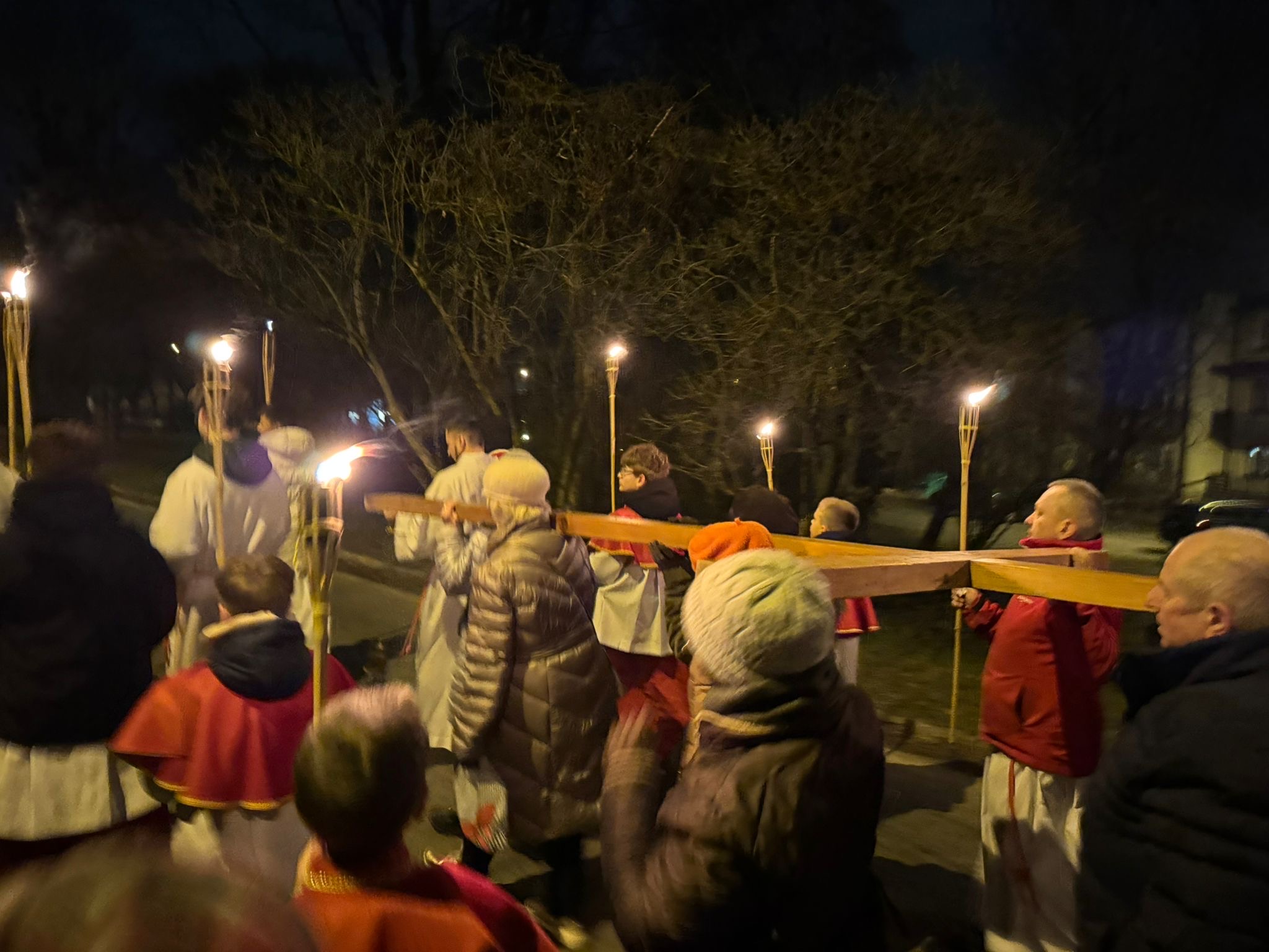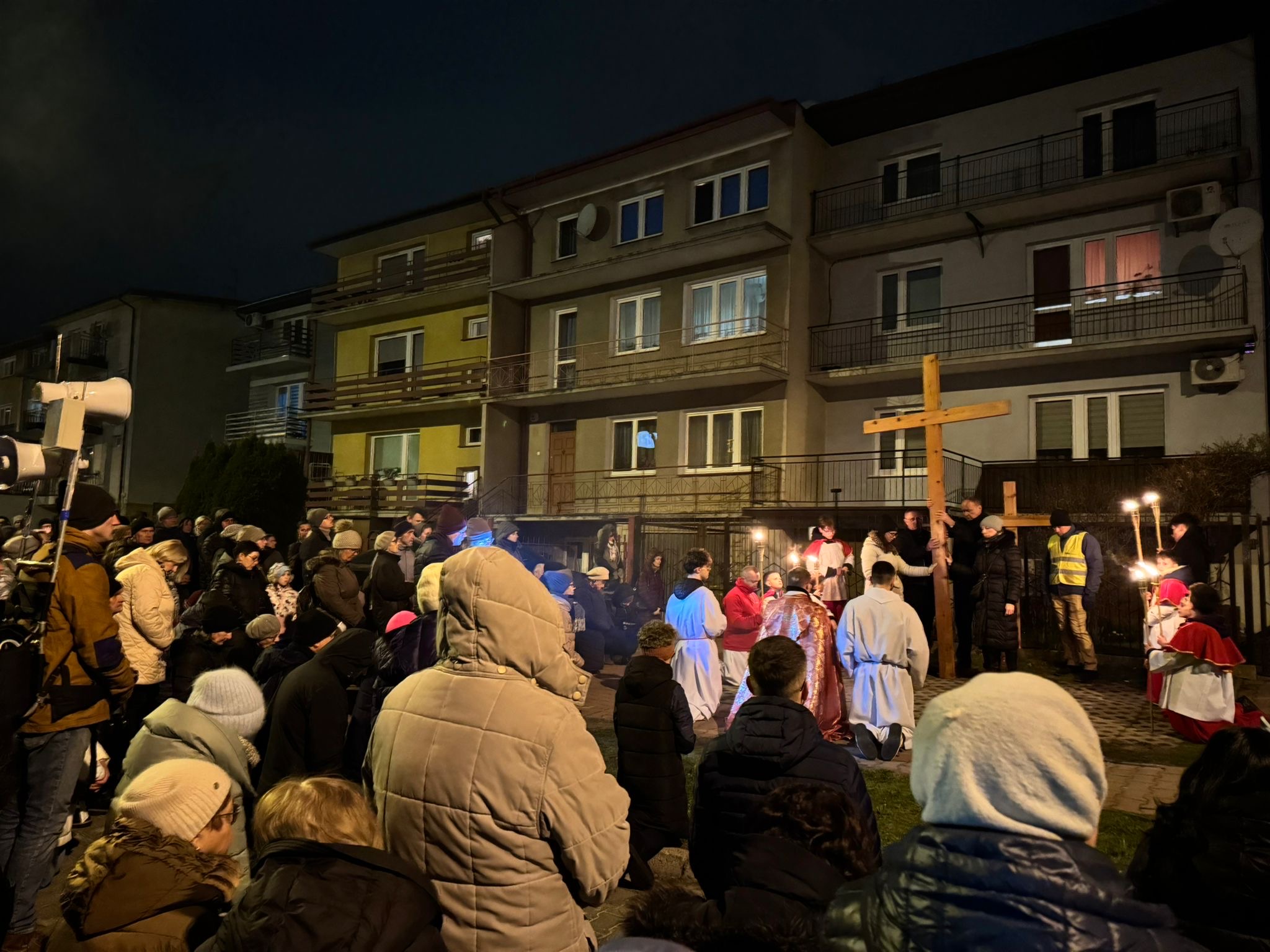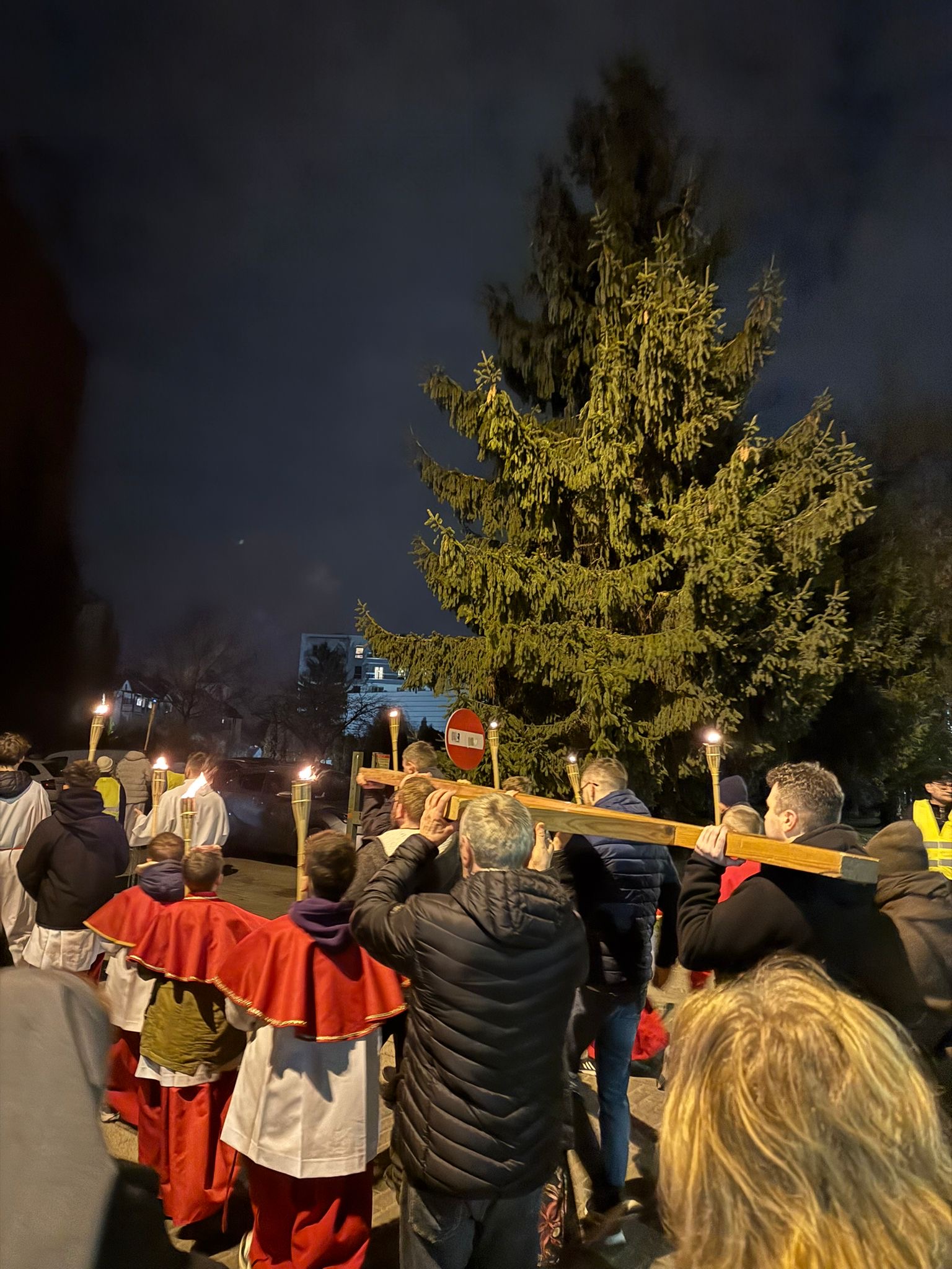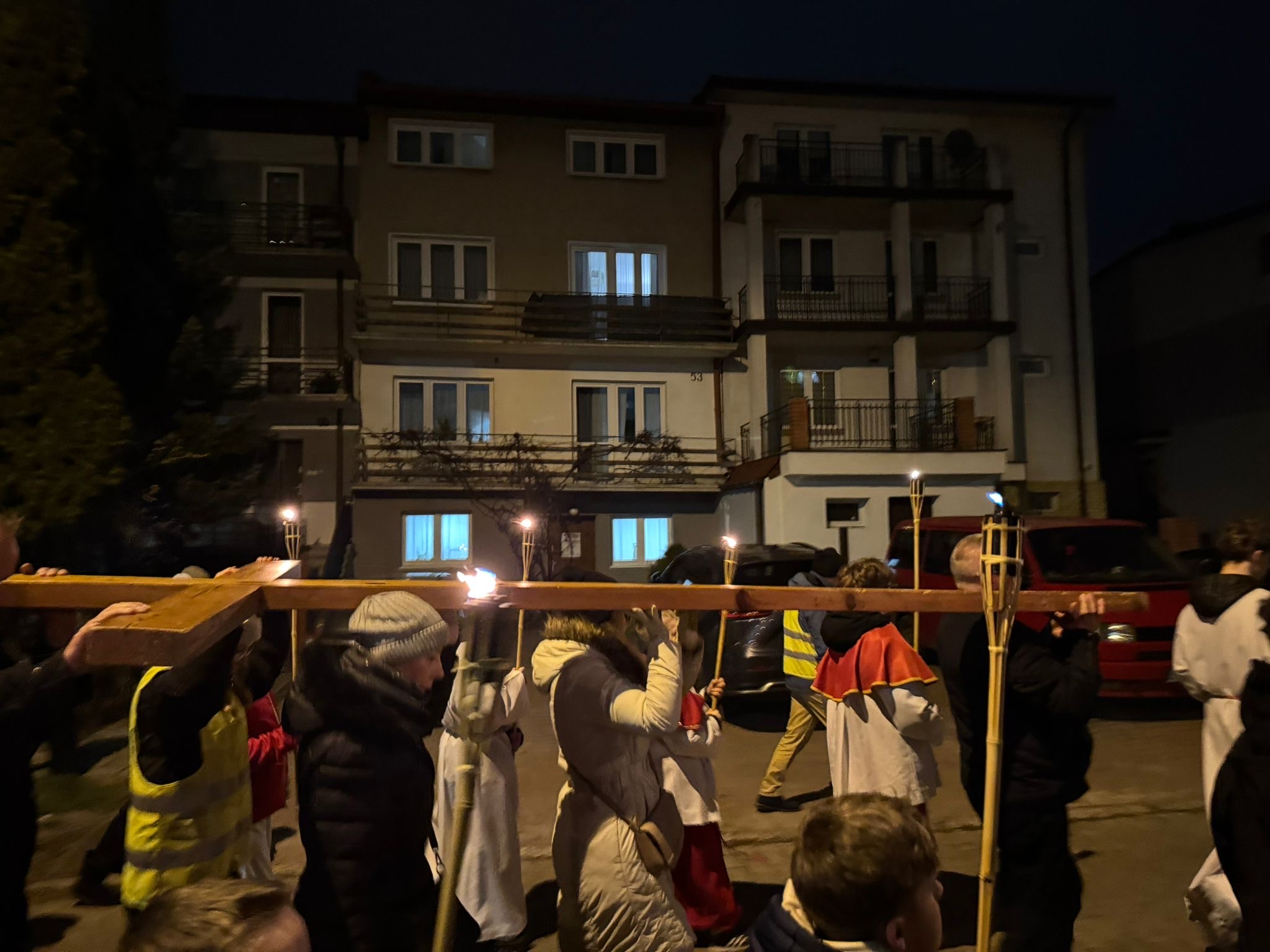 W piątek, 27 marca 2026 roku wierni rozważali kolejne stacje drogi krzyżowej idąc ulicami Parafii. Modlitwie przewodniczył ks. Dominik Gaładyk, S.A.C., wikariusz. Tegoroczne rozważania przygotowała wspólnota Kościoła Domowego.