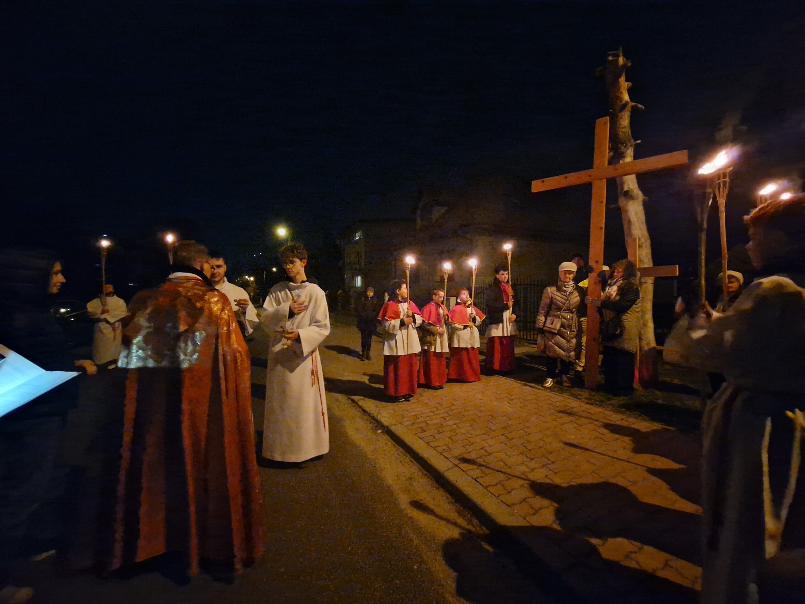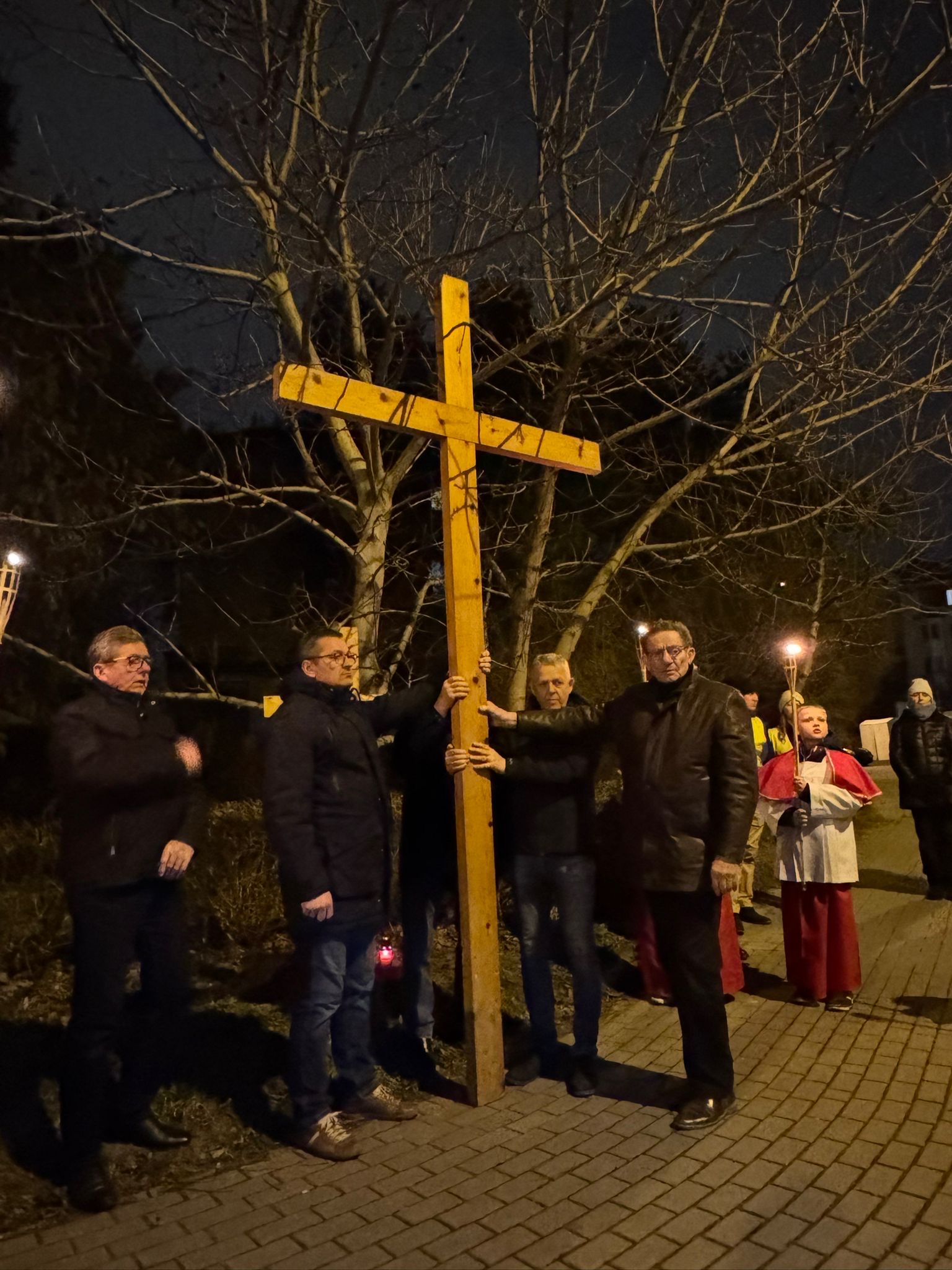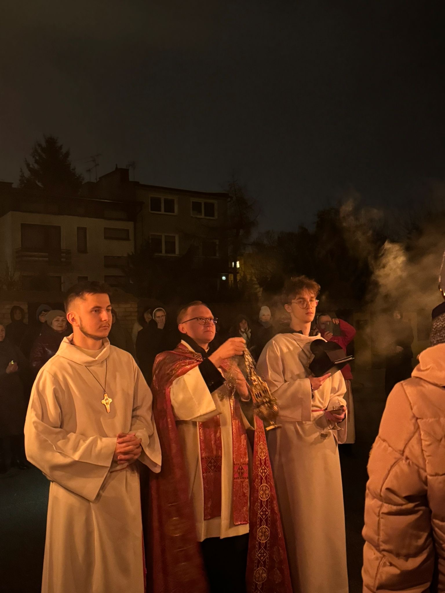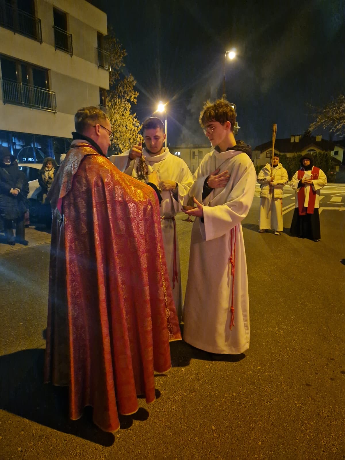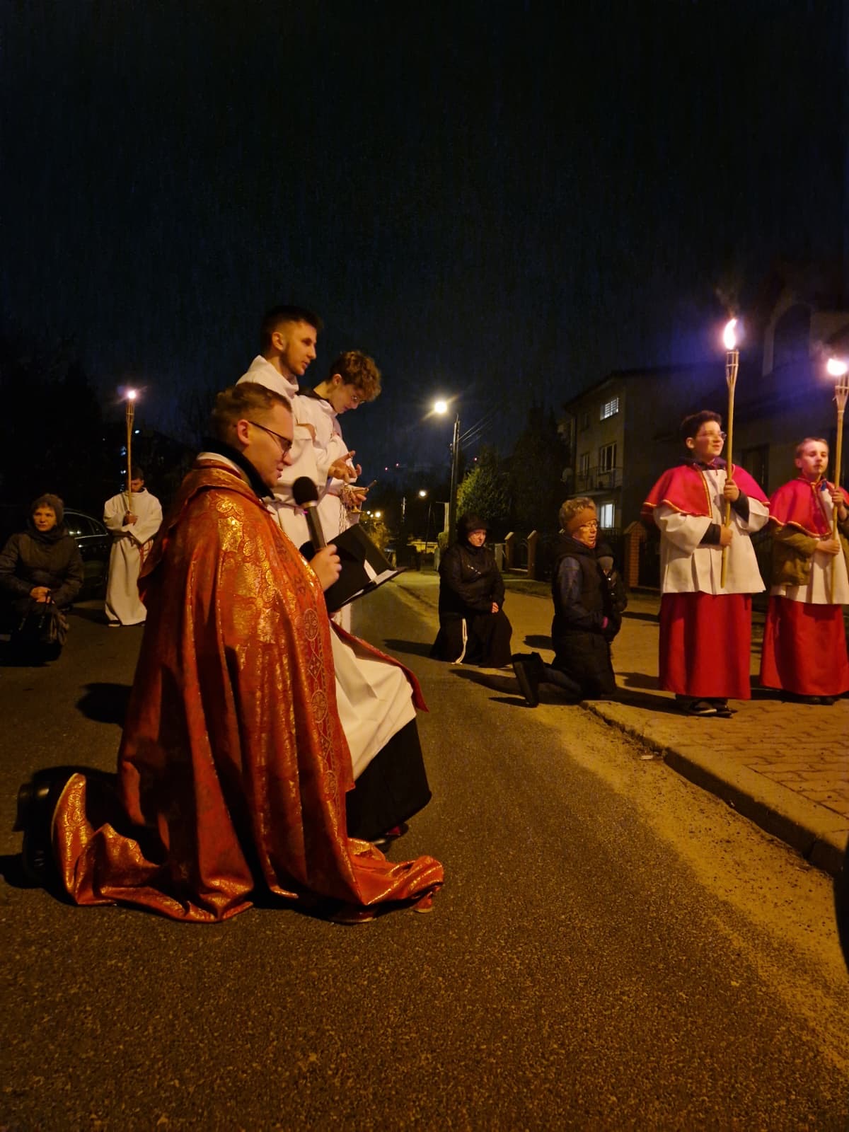 W piątek, 27 marca 2026 roku wierni rozważali kolejne stacje drogi krzyżowej idąc ulicami Parafii. Modlitwie przewodniczył ks. Dominik Gaładyk, S.A.C., wikariusz. Tegoroczne rozważania przygotowała wspólnota Kościoła Domowego.