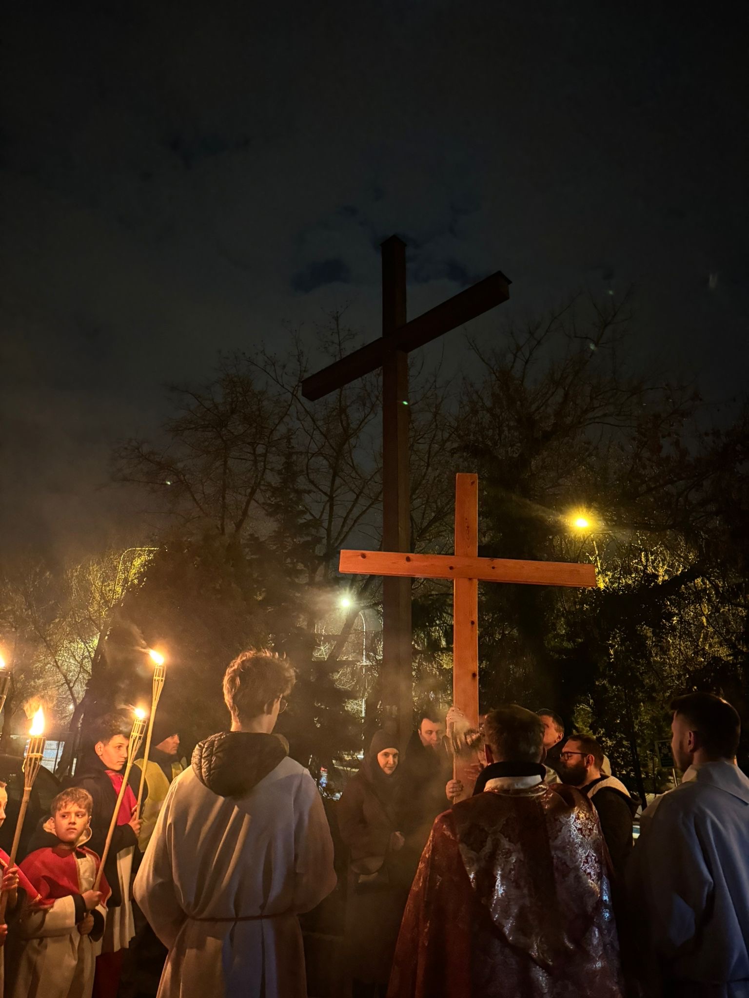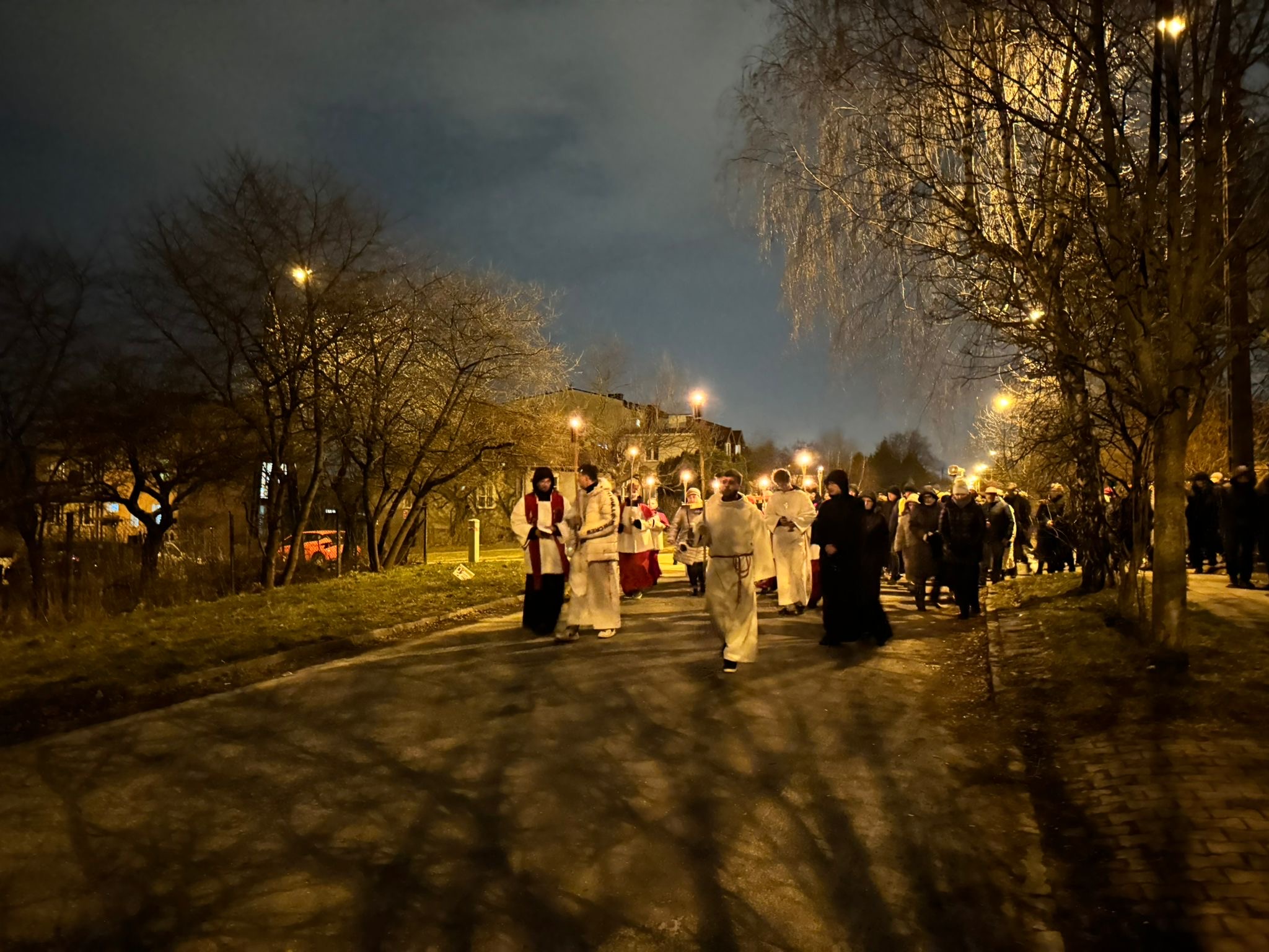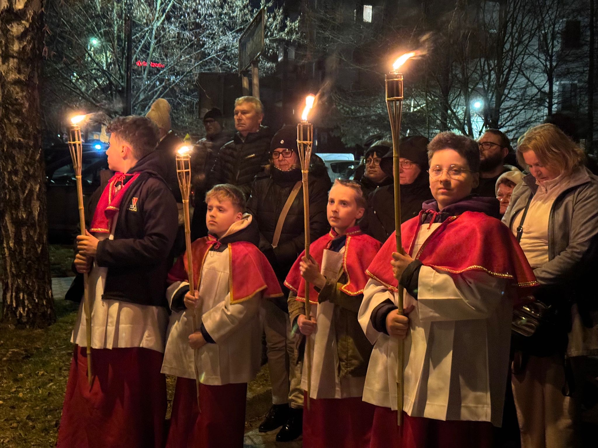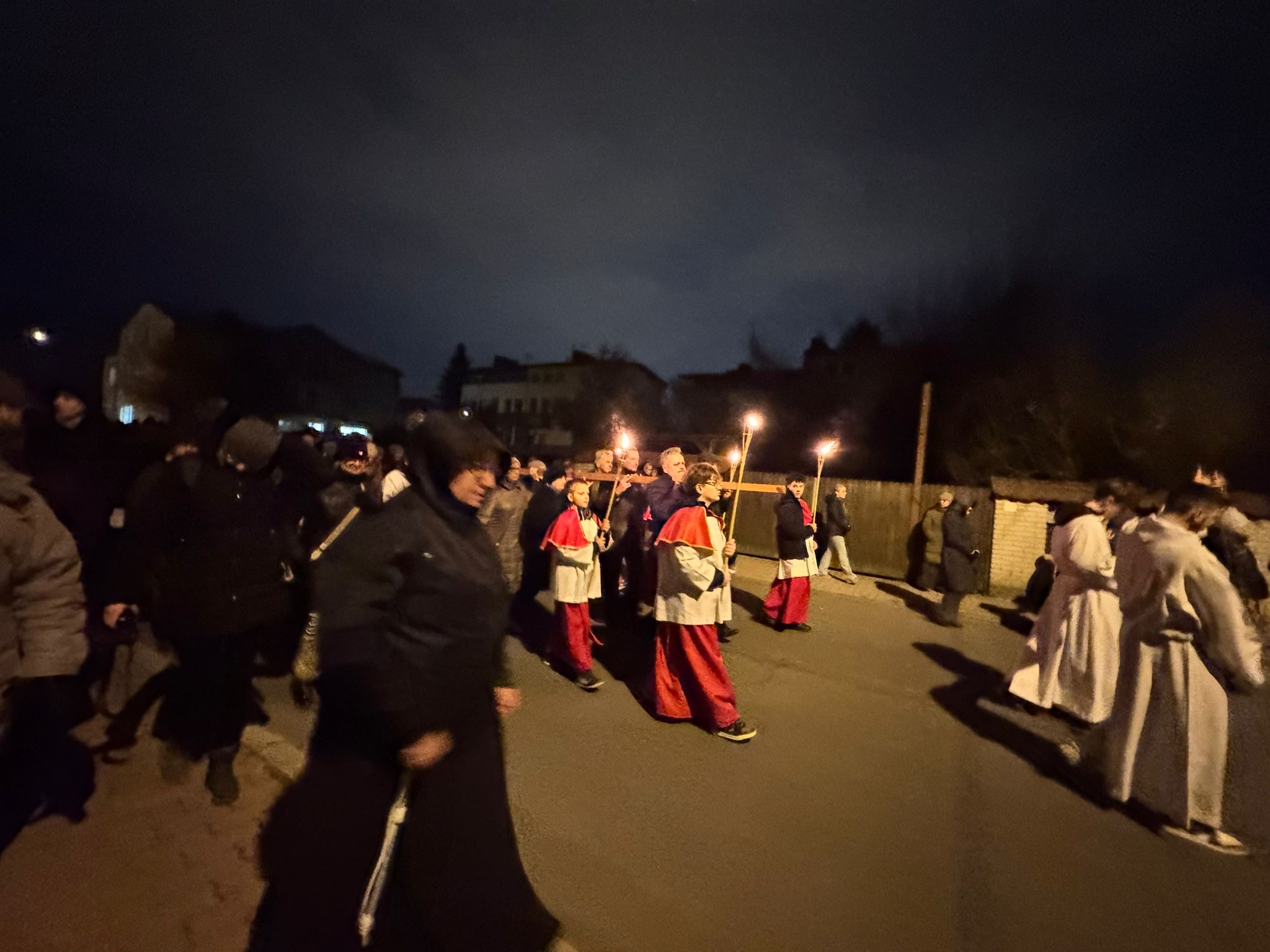 W piątek, 27 marca 2026 roku wierni rozważali kolejne stacje drogi krzyżowej idąc ulicami Parafii. Modlitwie przewodniczył ks. Dominik Gaładyk, S.A.C., wikariusz. Tegoroczne rozważania przygotowała wspólnota Kościoła Domowego.