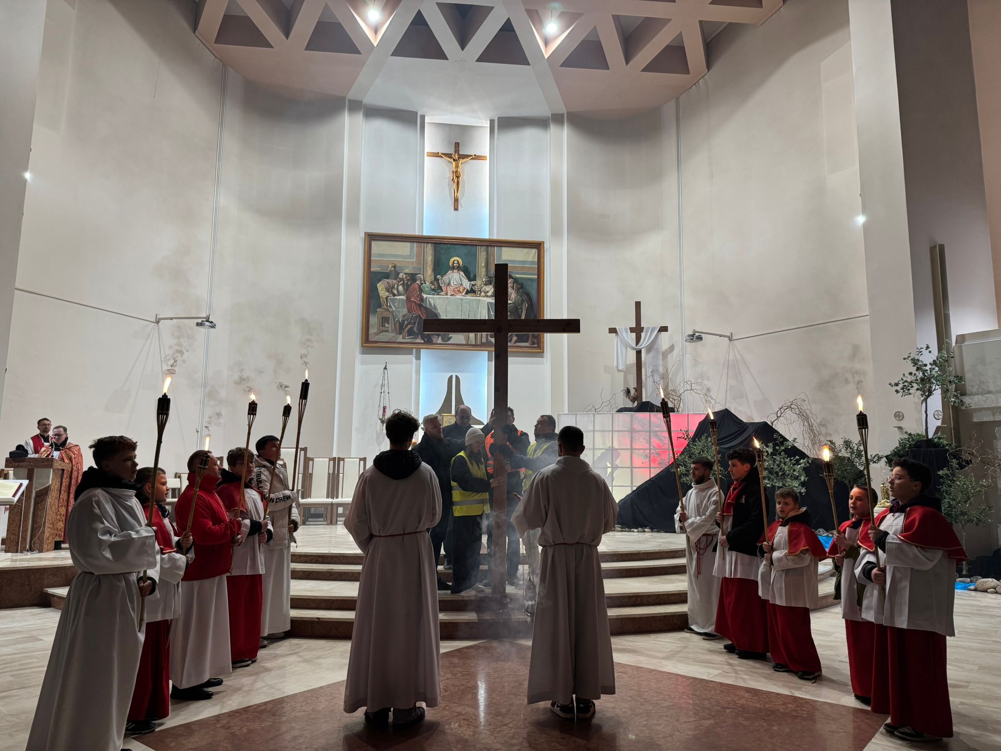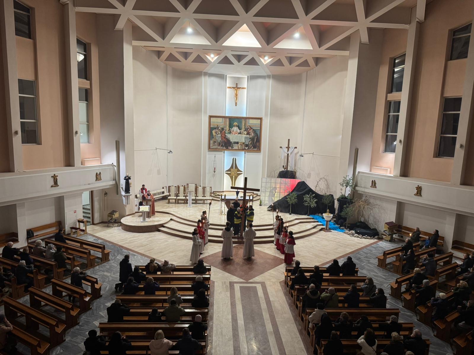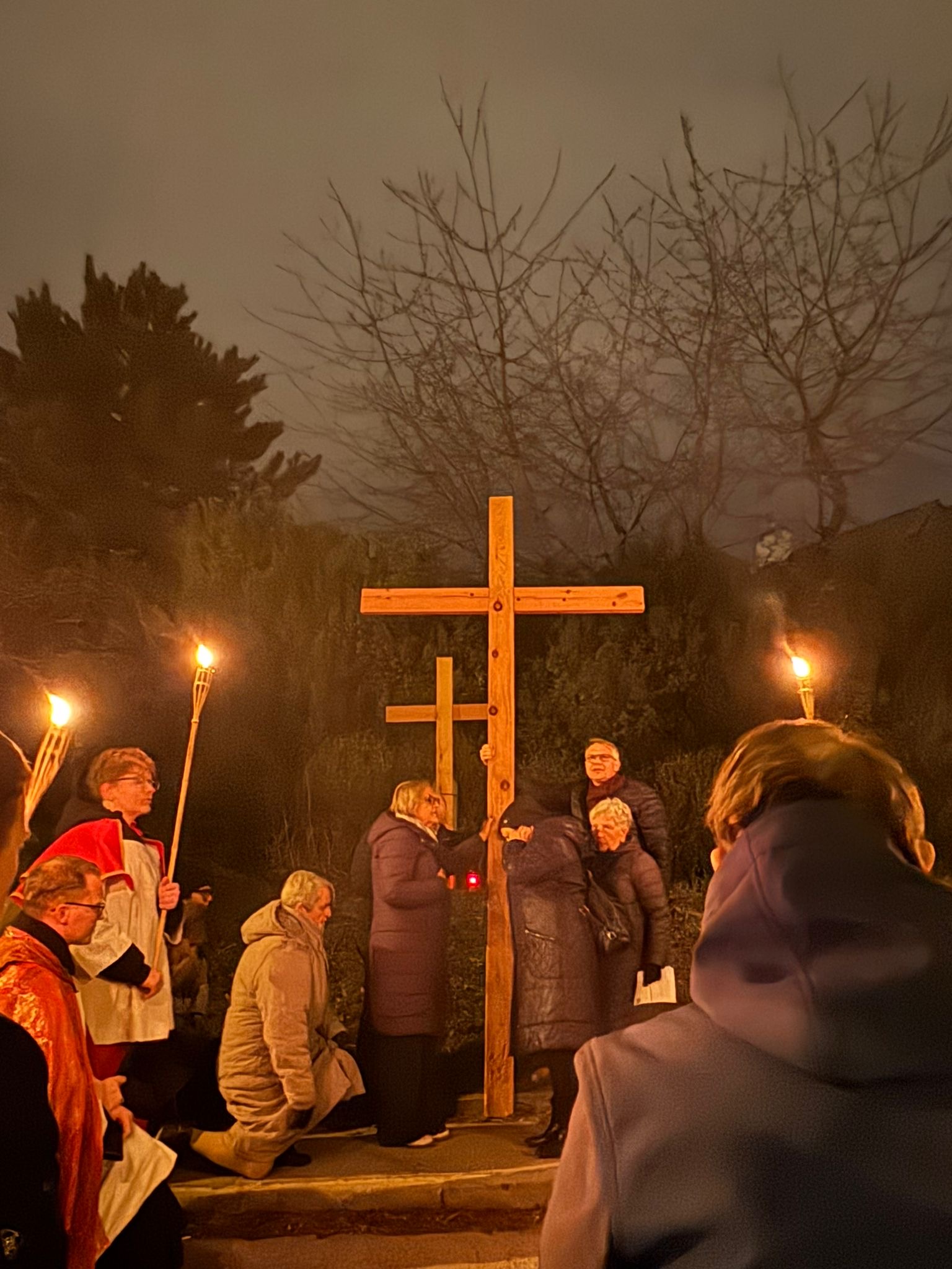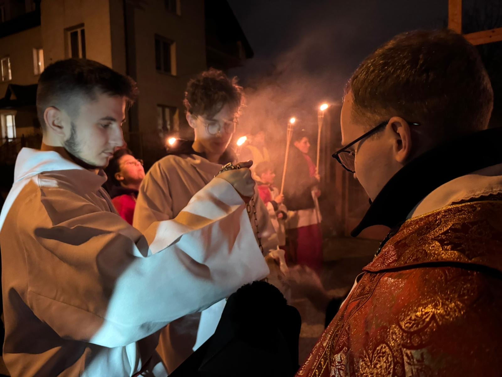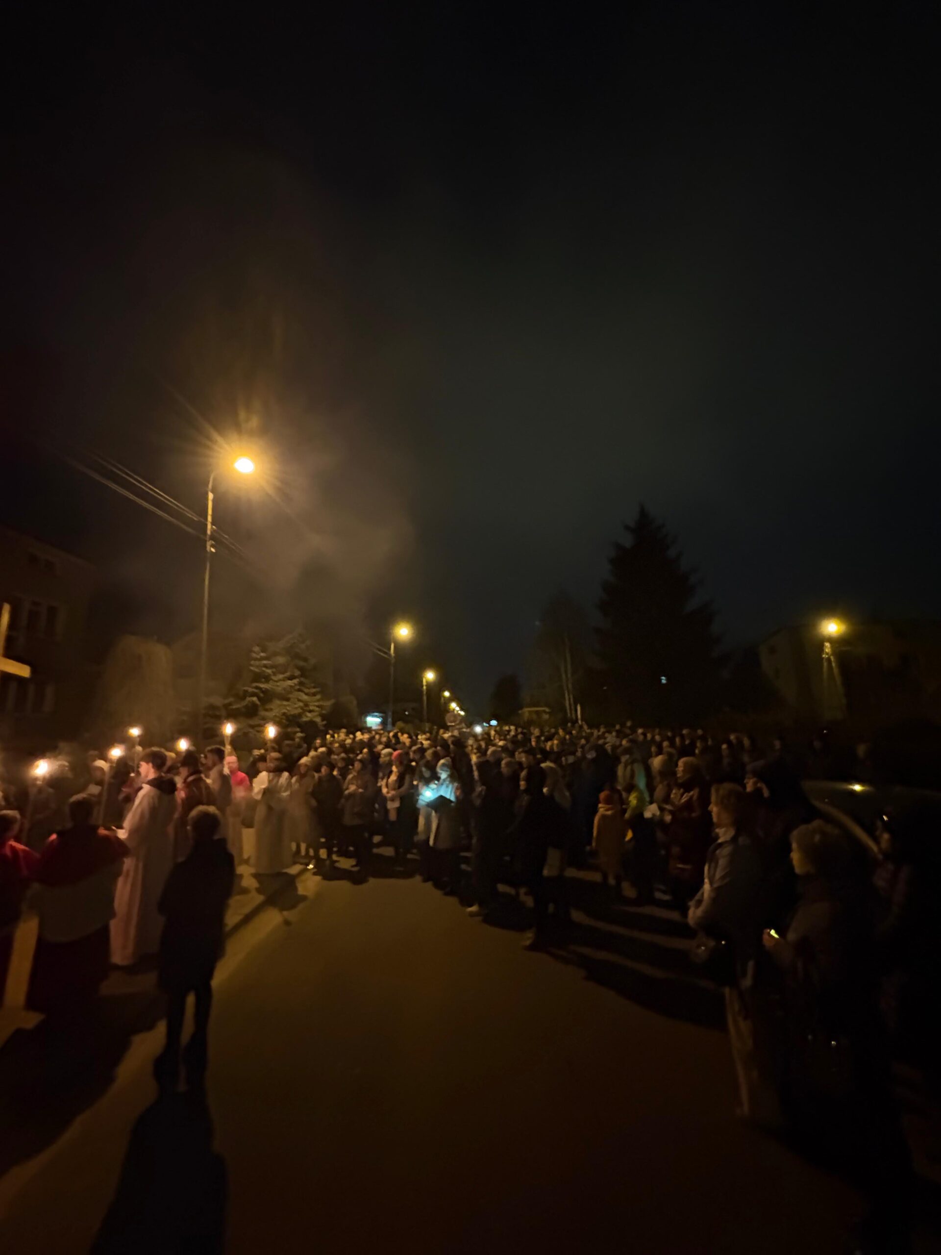 W piątek, 27 marca 2026 roku wierni rozważali kolejne stacje drogi krzyżowej idąc ulicami Parafii. Modlitwie przewodniczył ks. Dominik Gaładyk, S.A.C., wikariusz. Tegoroczne rozważania przygotowała wspólnota Kościoła Domowego.