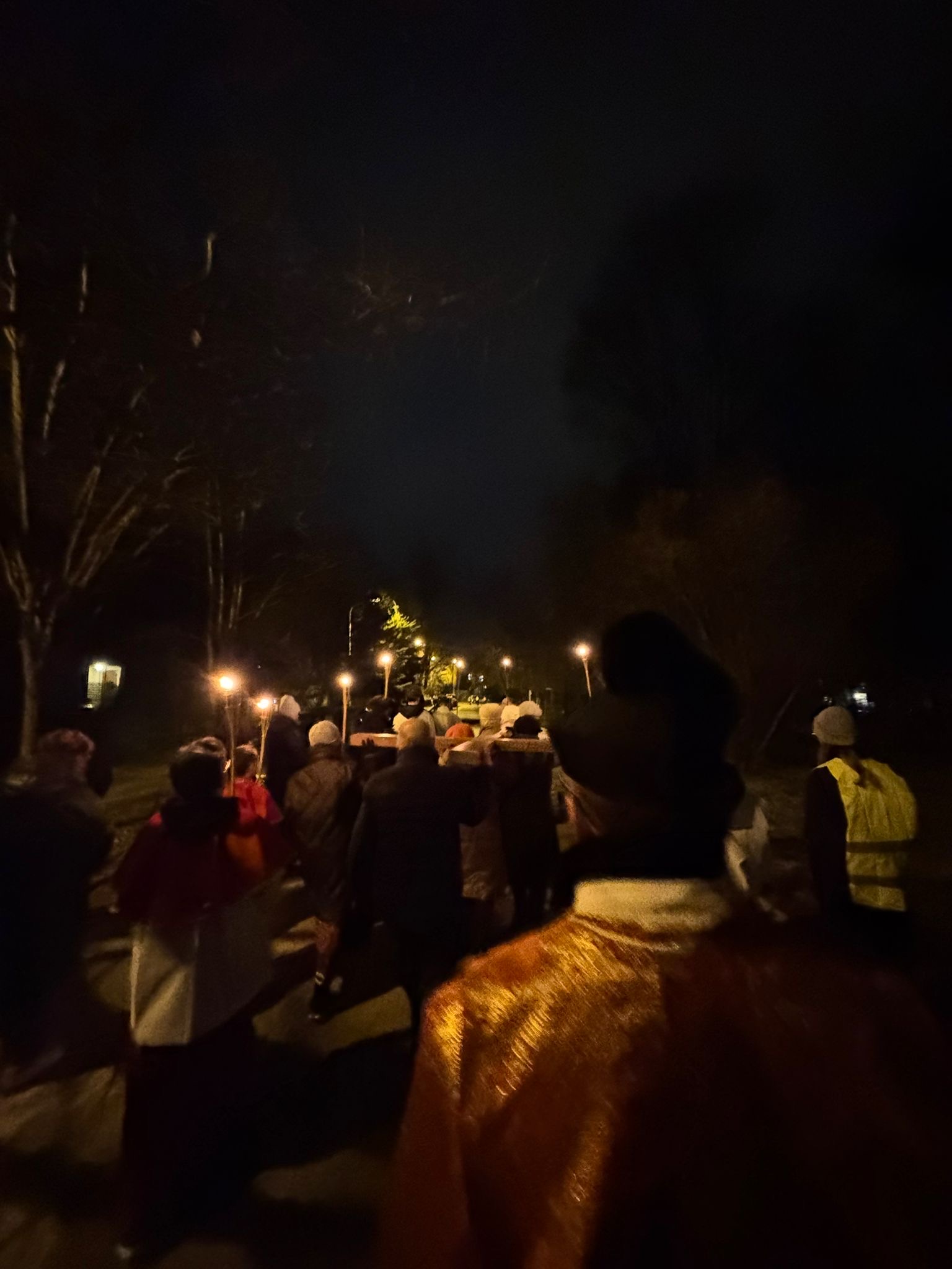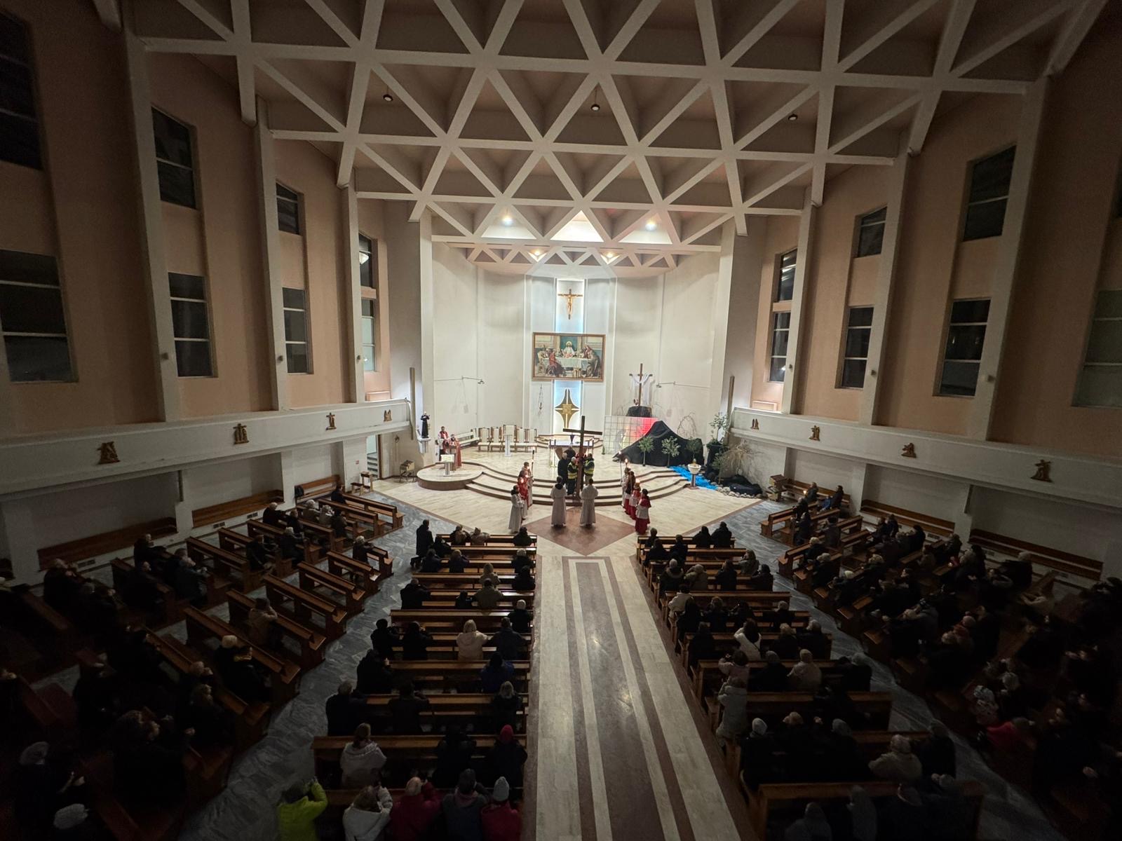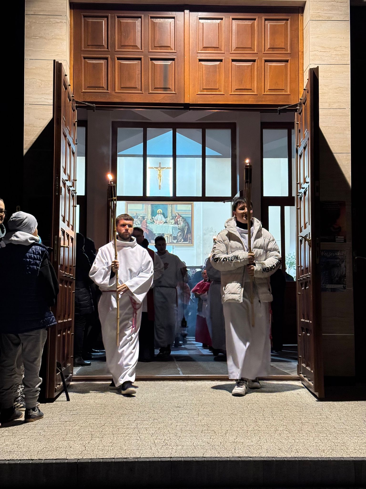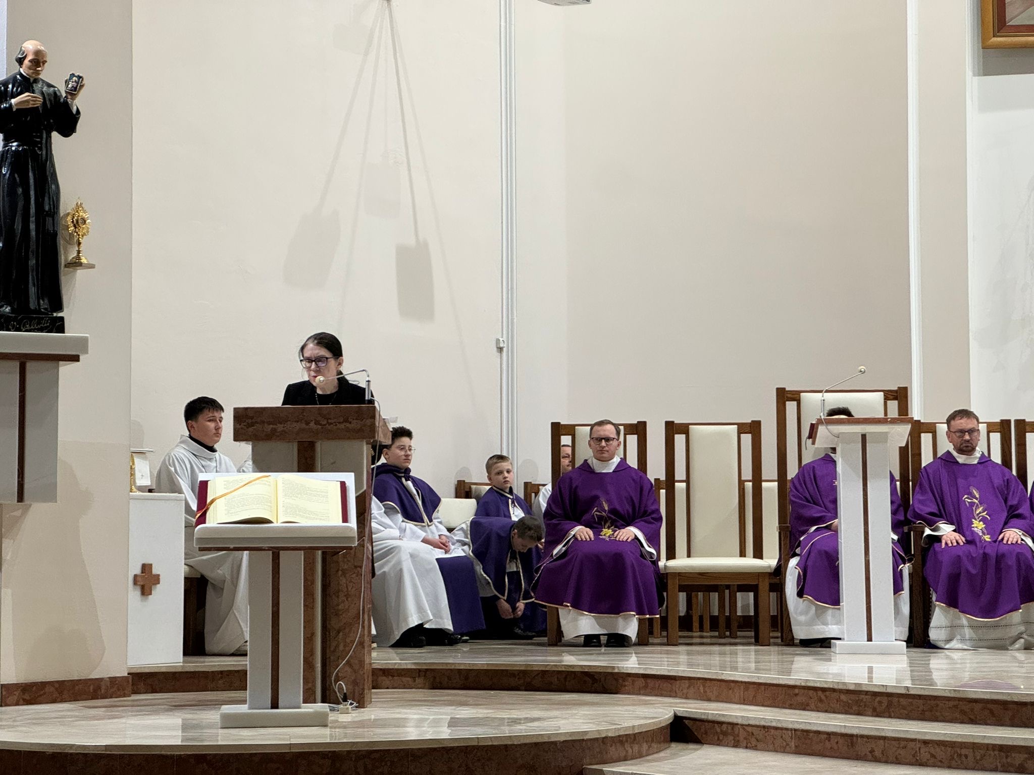Nabożeństwo drogi krzyżowej poprzedziła Msza święta pod przewodnictwem ks. Rafała Kucharskiego, S.A.C., który wygłosił także homilię. Modlitwie towarzyszył Chór Parafialny Vox Pallotti pod dyrekcją Natalii Vilhan.