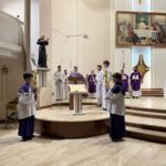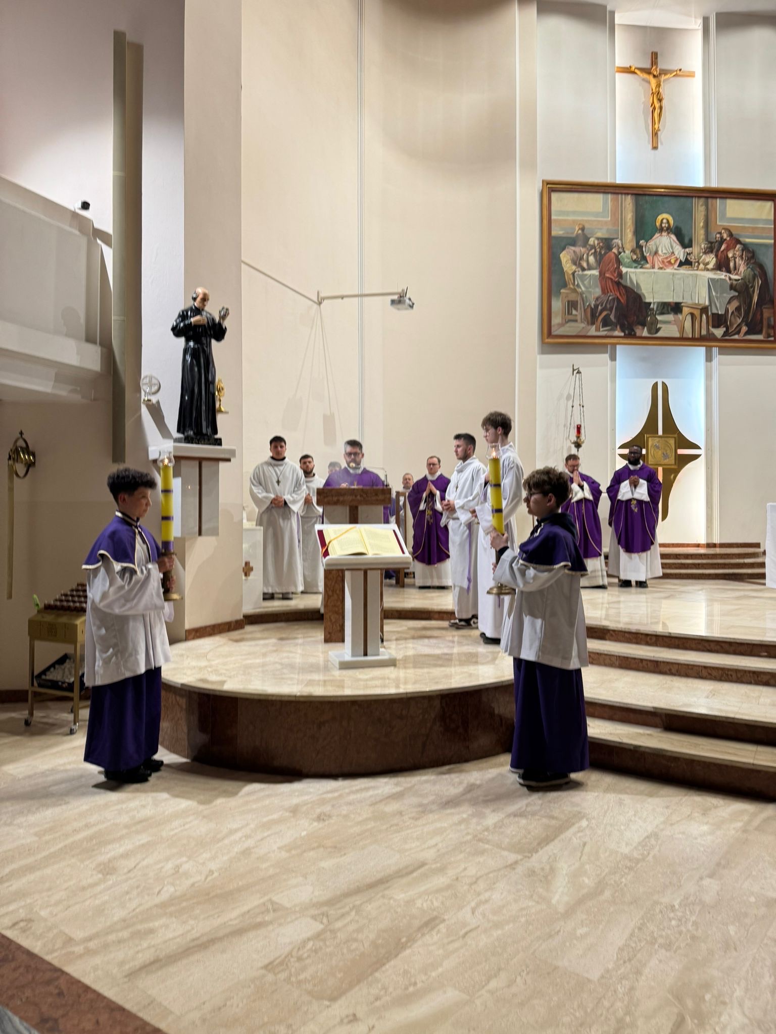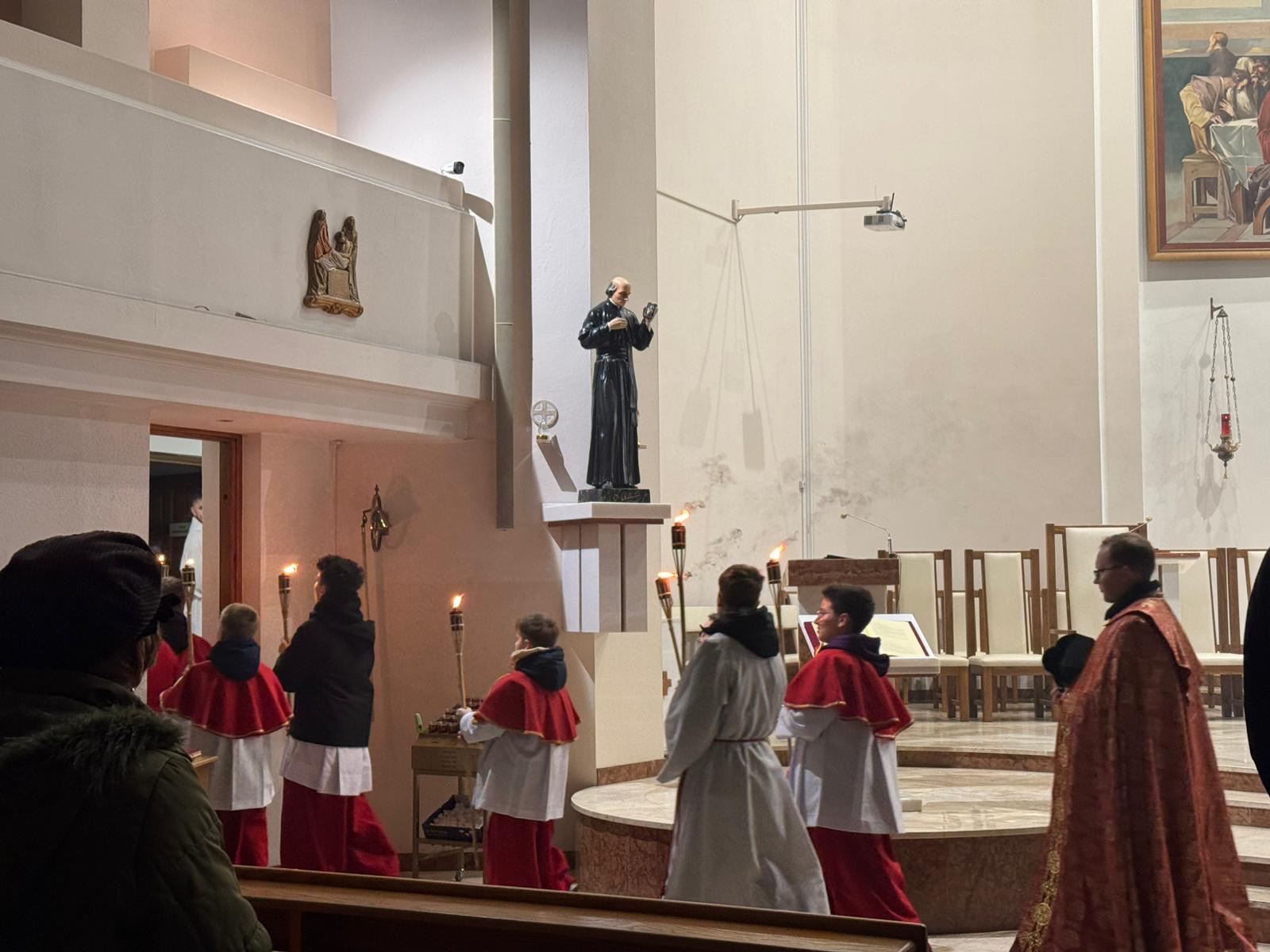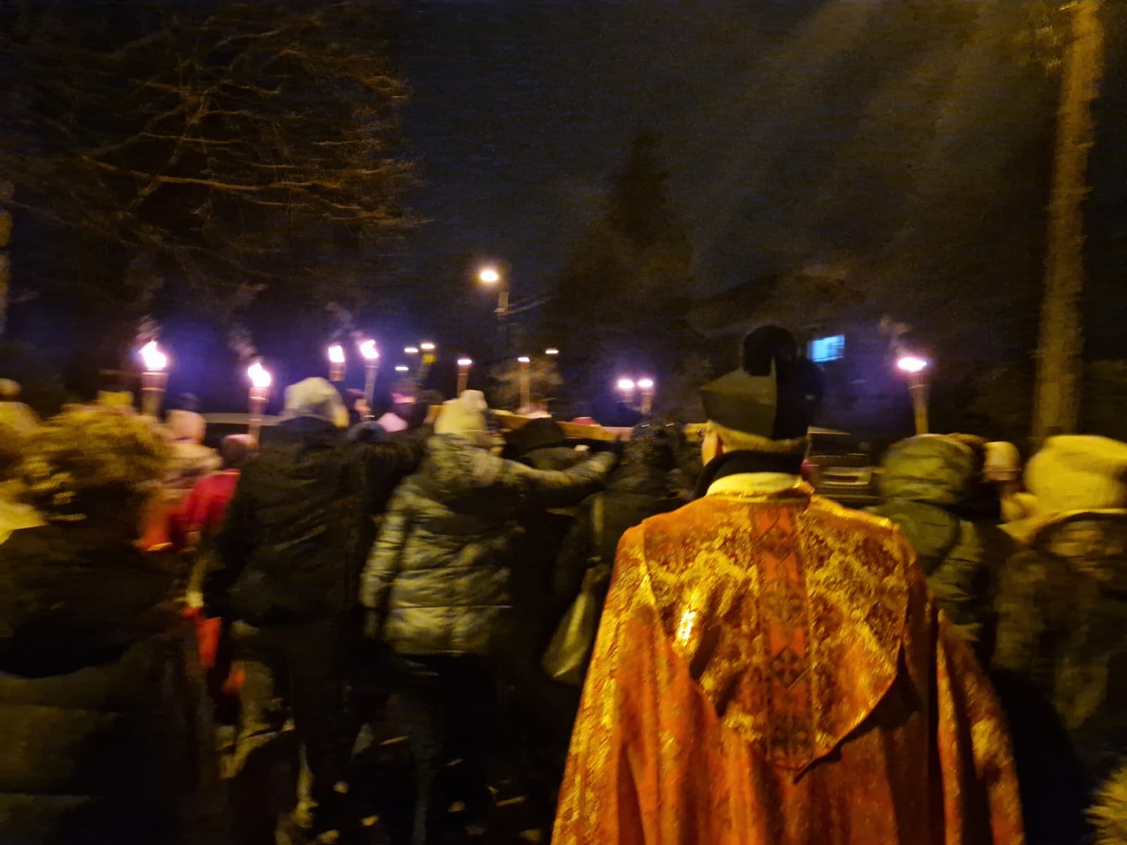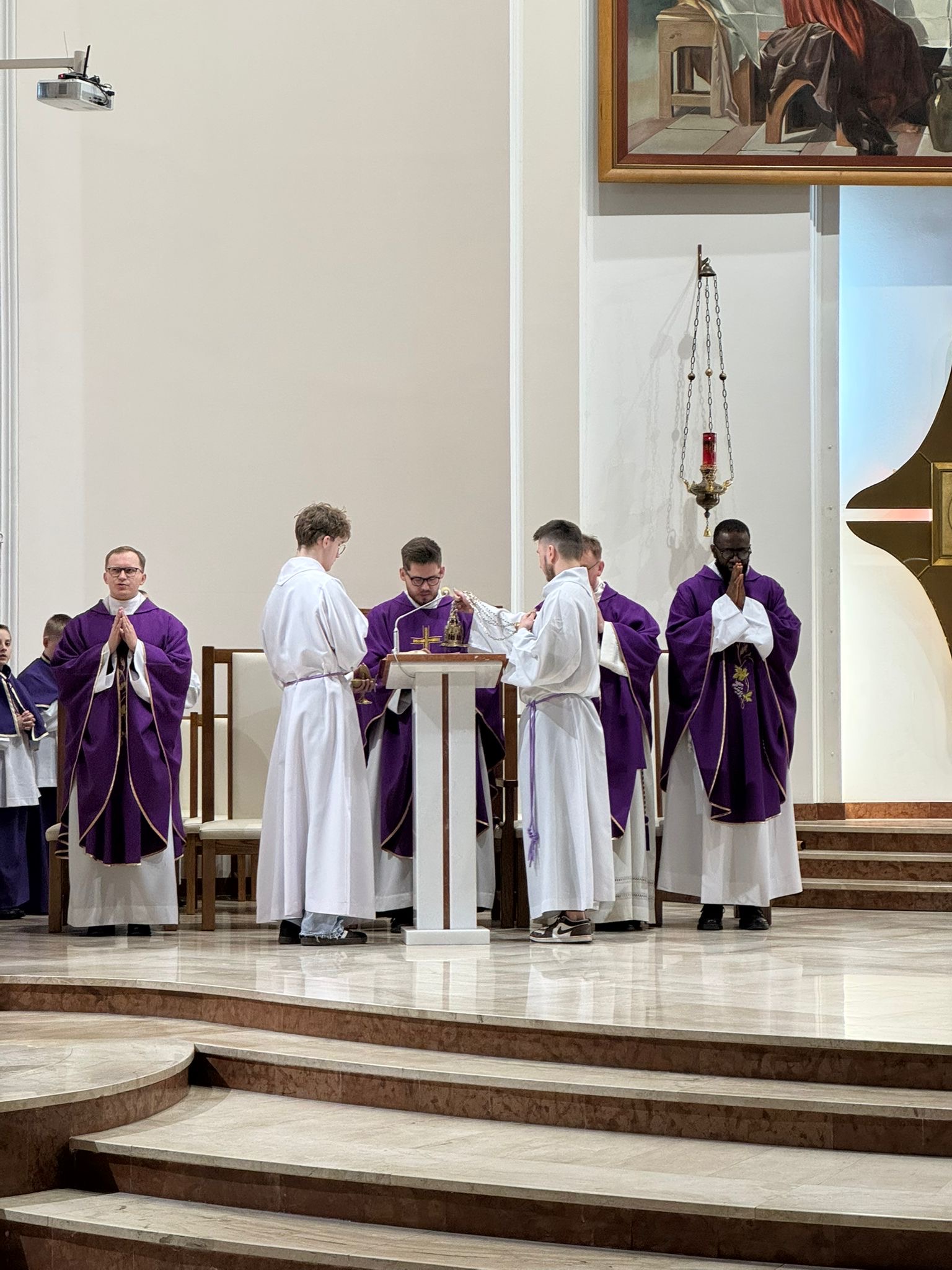 Nabożeństwo drogi krzyżowej poprzedziła Msza święta pod przewodnictwem ks. Rafała Kucharskiego, S.A.C., który wygłosił także homilię. Modlitwie towarzyszył Chór Parafialny Vox Pallotti pod dyrekcją Natalii Vilhan.