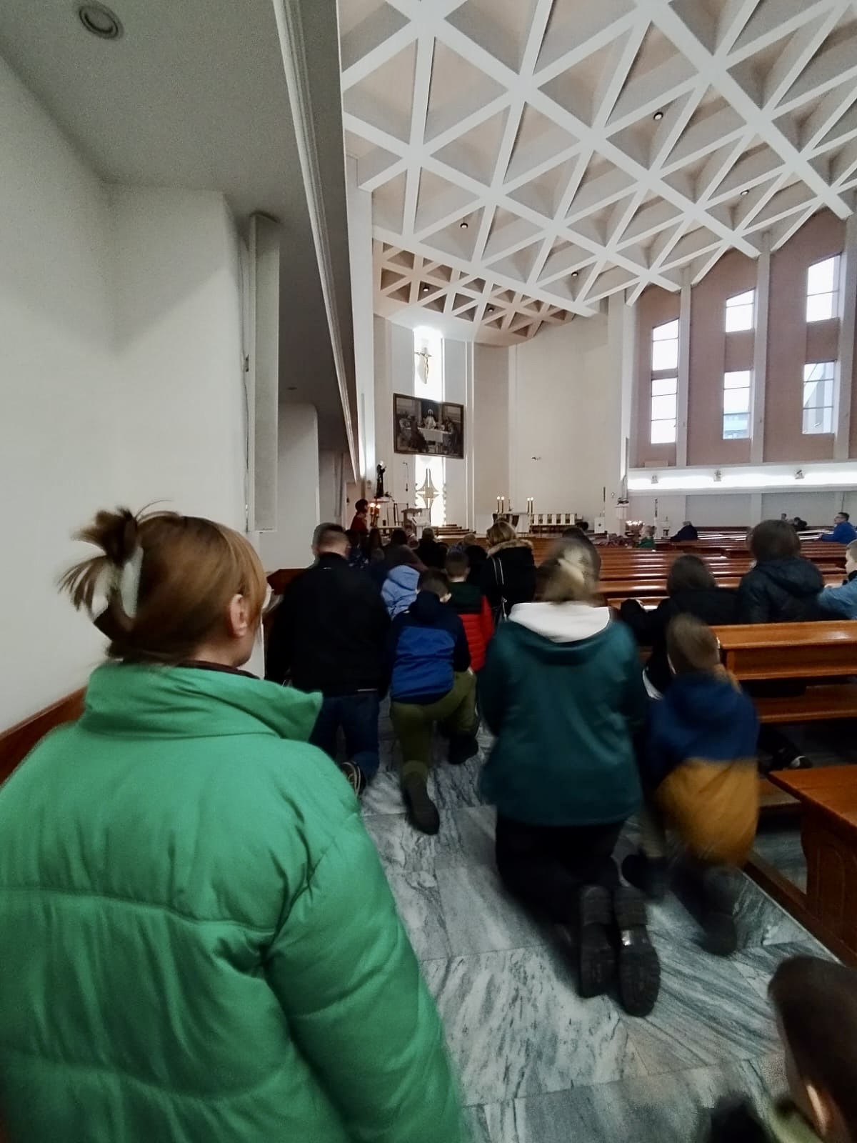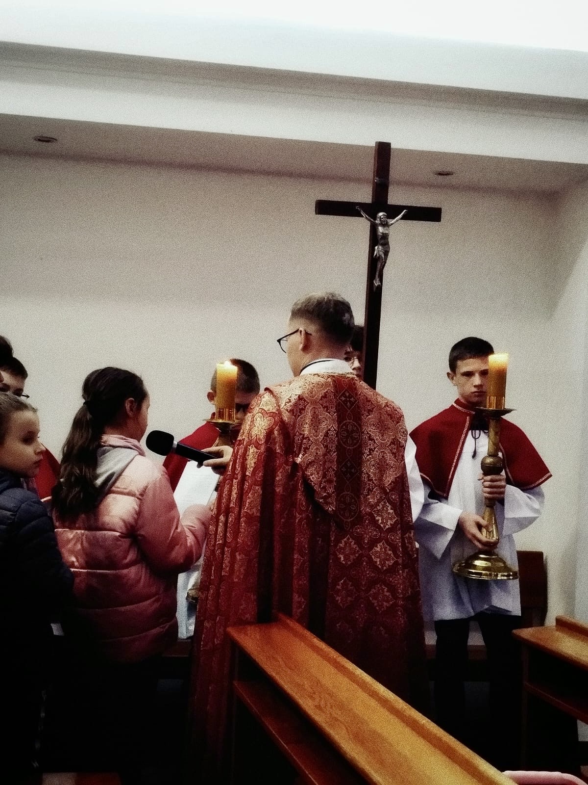 Dzisiejsze (14 marca 2025 r.) rozważania Drogi Krzyżowej o 16:30 prowadziły Dzieci z Publicznej Szkoły im. św. Wincentego Pallottiego w Lublinie. Modlitwa była podążaniem za Chrystusem niosącym krzyż, tym razem z perspektywy Jego Matki Maryi.