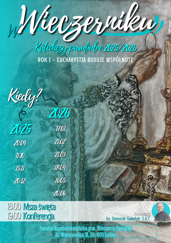 Pierwsza katecheza parafialna z cyklu “W Wieczerniku. Eucharystia buduje wsp贸lnot臋“, zosta艂a wyg艂oszona 20 wrze艣nia 2025 r. Katechez臋 poprowadzi艂 ks. Dominik Ga艂adyk, S.A.C.