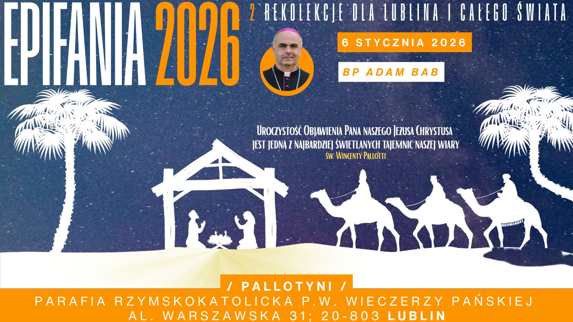 Niech przeżyte Triduum i uroczystość Epifanii umacniają nas w wierze i przypominają, że każdy ochrzczony jest zaproszony, by nieść światło Chrystusa tam, gdzie najbardziej go potrzeba. A marzenie św. Wincentego Pallottiego, aby jednoczyć wysiłki dla zbawienia wszystkich ludzi, niech dalej realizuje się w naszej Parafii.