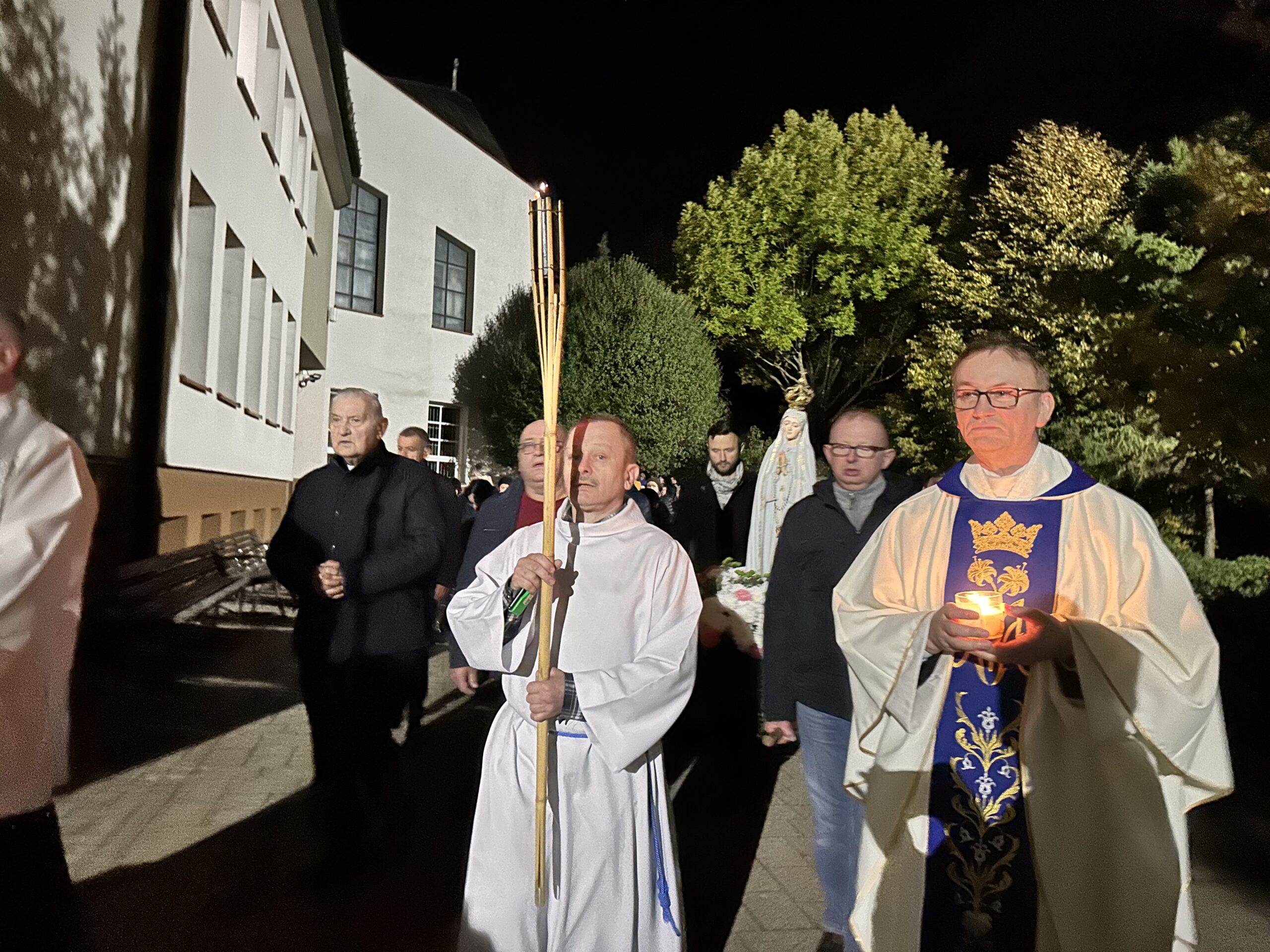 Po różańcu odbyła się uroczysta procesja światła z figurą Matki Bożej Fatimskiej, niesioną wśród zapalonych świec i śpiewu pieśni maryjnych.