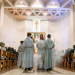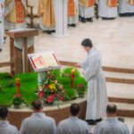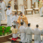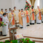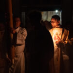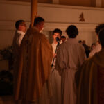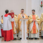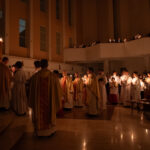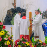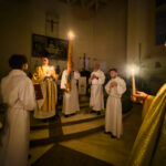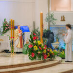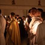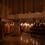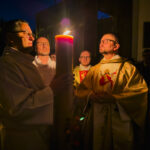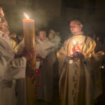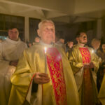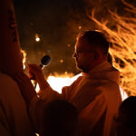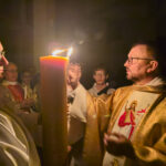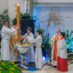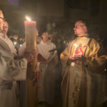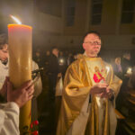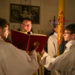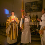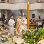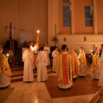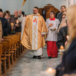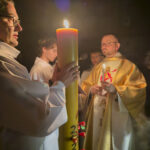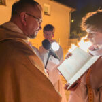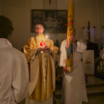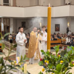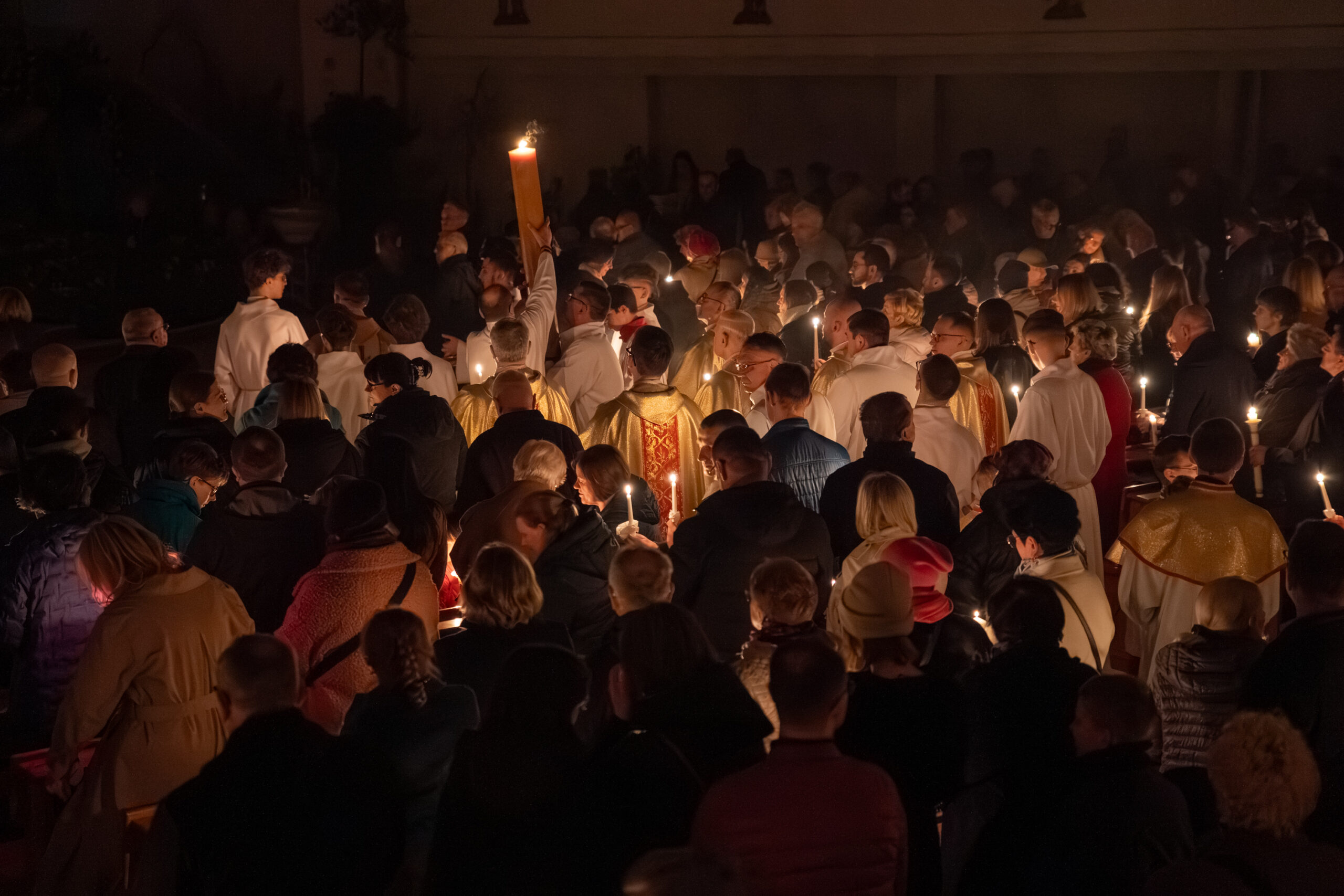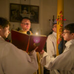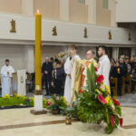 Liturgia rozpoczęła się od obrzędu światła – poświęcenia ognia i zapalenia Paschału, który symbolizuje Chrystusa Zmartwychwstałego, rozpraszającego ciemności grzechu i śmierci. Następnie odśpiewany został przez ks. Dominika Gaładyka, S.A.C., uroczysty Exsultet, czyli starożytne orędzie wielkanocne. Jest to podniosły hymn wykonywany na początku Wigilii Paschalnej, który wzywa całe stworzenie do radości i wychwala Boga za dar zbawienia oraz zwycięstwo Chrystusa nad śmiercią.