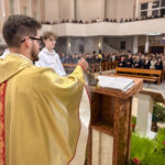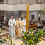 Celebracja Wigilii Paschalnej – najważniejszej liturgii w całym roku kościelnym – 04 kwietnia 2026 r. rozpoczęła się o godz. 20:00. Licznie zgromadzeni wierni wspólnie przeżywali tę wyjątkową noc, wypełnioną modlitwą, skupieniem oraz radością ze Zmartwychwstania Pańskiego. Liturgii przewodniczył ks. Proboszcz Artur Manelski, S.A.C.