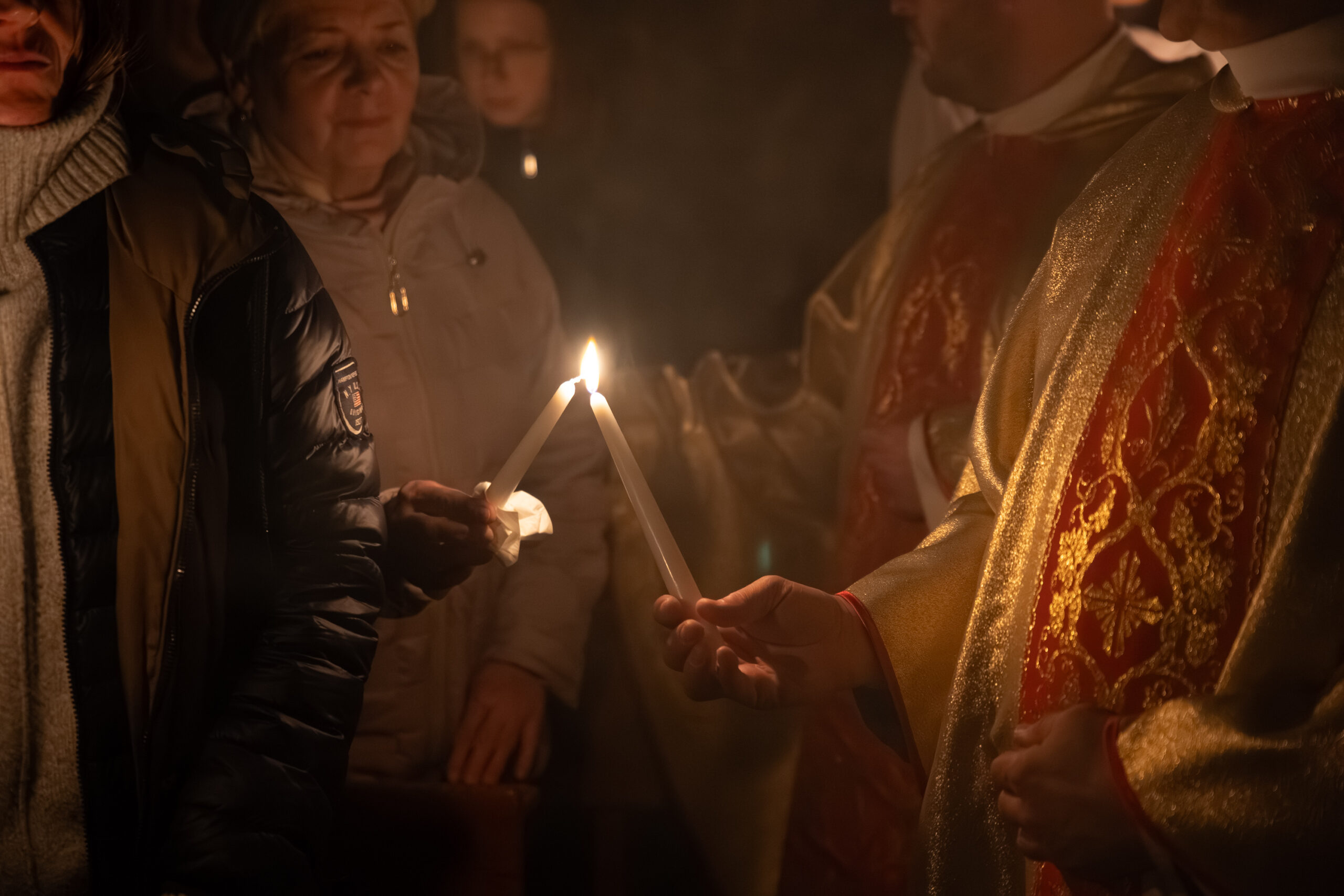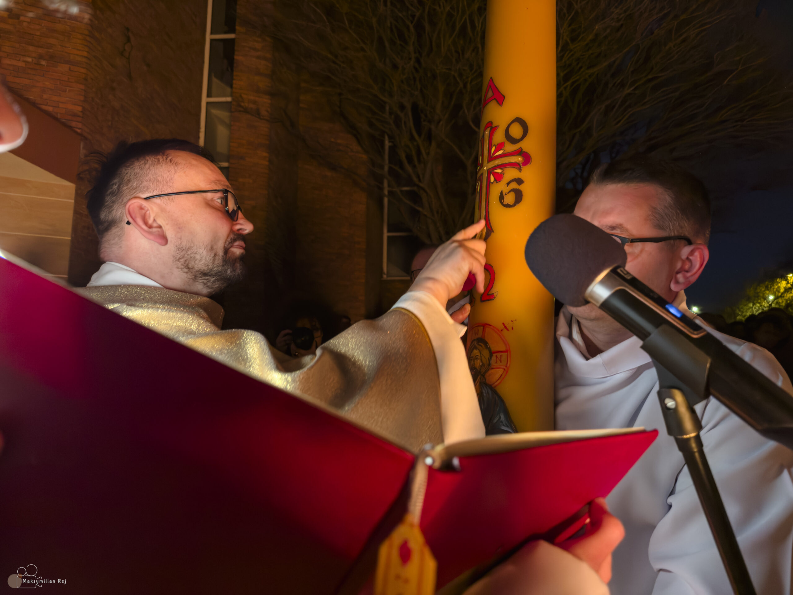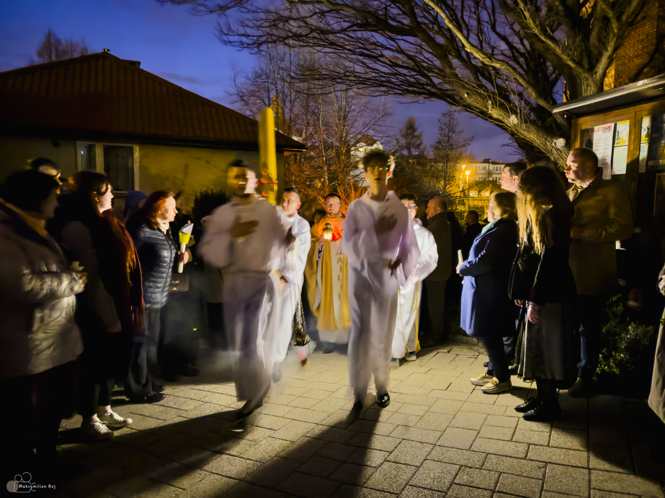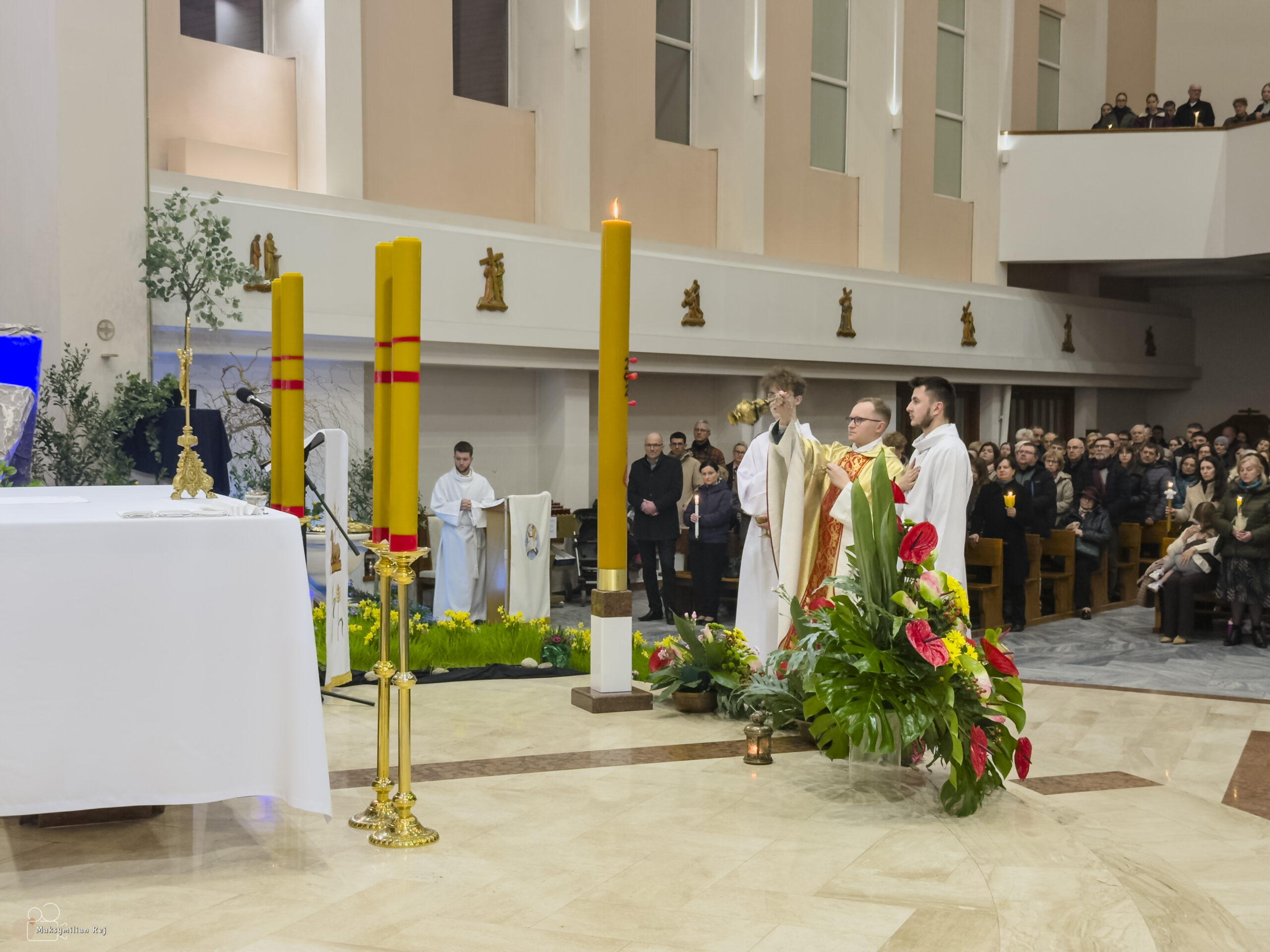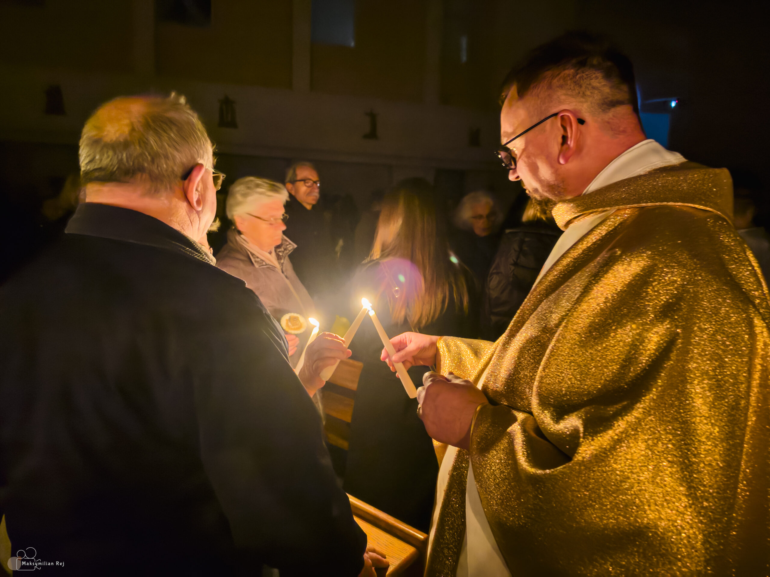 Liturgia rozpoczęła się od obrzędu światła – poświęcenia ognia i zapalenia Paschału, który symbolizuje Chrystusa Zmartwychwstałego, rozpraszającego ciemności grzechu i śmierci. Następnie odśpiewany został przez ks. Dominika Gaładyka, S.A.C., uroczysty Exsultet, czyli starożytne orędzie wielkanocne. Jest to podniosły hymn wykonywany na początku Wigilii Paschalnej, który wzywa całe stworzenie do radości i wychwala Boga za dar zbawienia oraz zwycięstwo Chrystusa nad śmiercią.