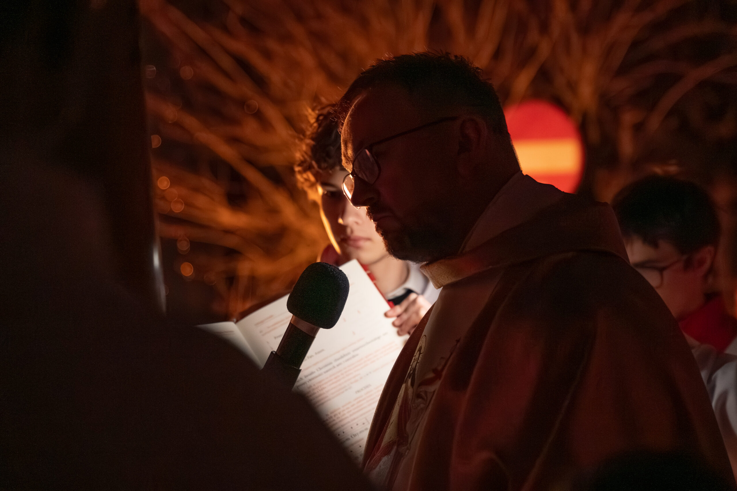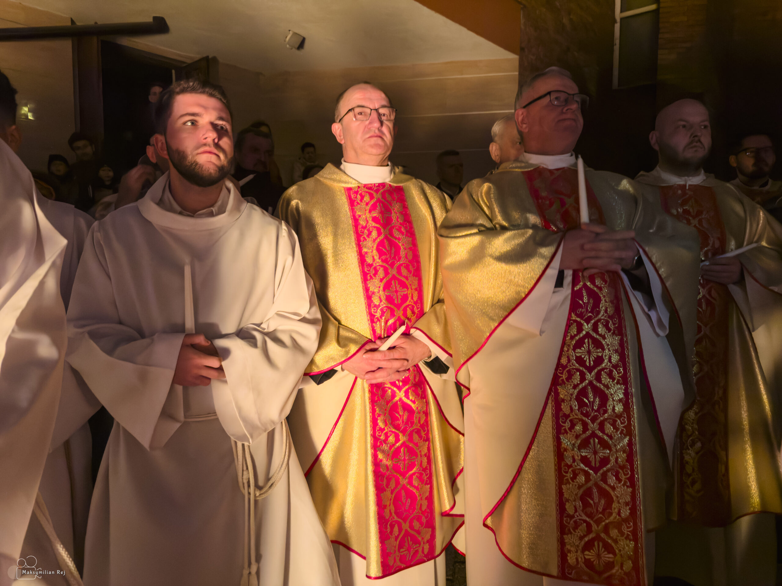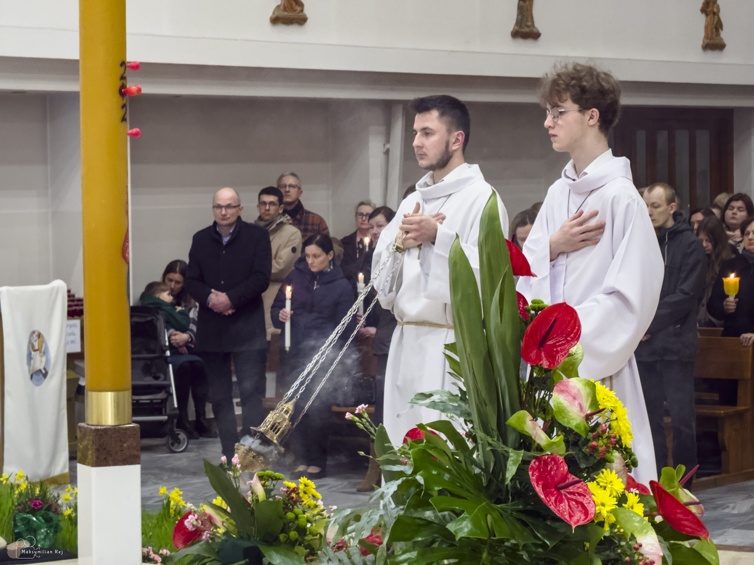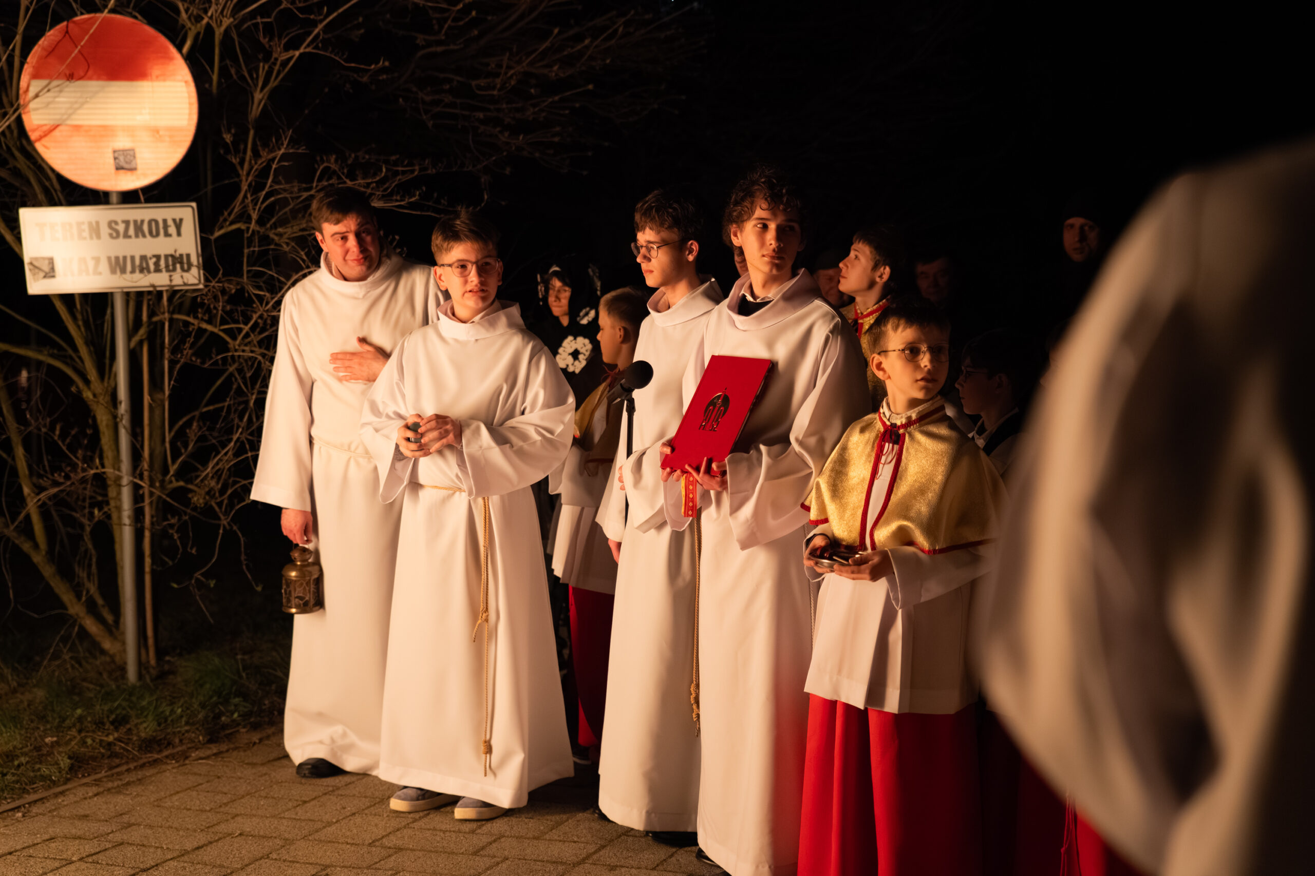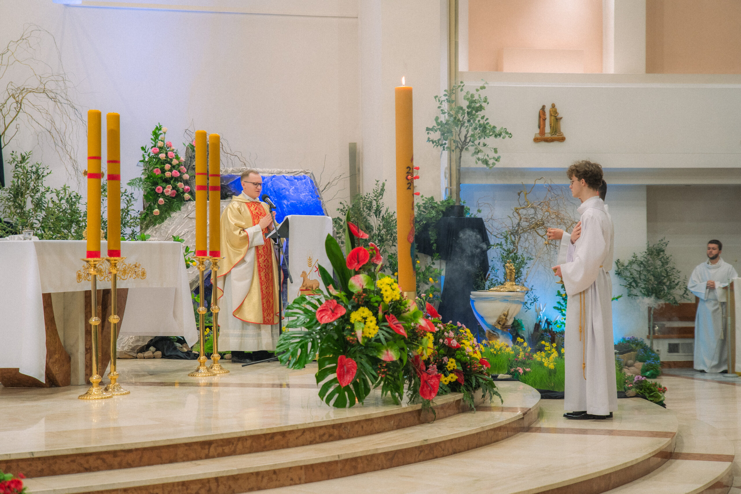 Liturgia rozpoczęła się od obrzędu światła – poświęcenia ognia i zapalenia Paschału, który symbolizuje Chrystusa Zmartwychwstałego, rozpraszającego ciemności grzechu i śmierci. Następnie odśpiewany został przez ks. Dominika Gaładyka, S.A.C., uroczysty Exsultet, czyli starożytne orędzie wielkanocne. Jest to podniosły hymn wykonywany na początku Wigilii Paschalnej, który wzywa całe stworzenie do radości i wychwala Boga za dar zbawienia oraz zwycięstwo Chrystusa nad śmiercią.