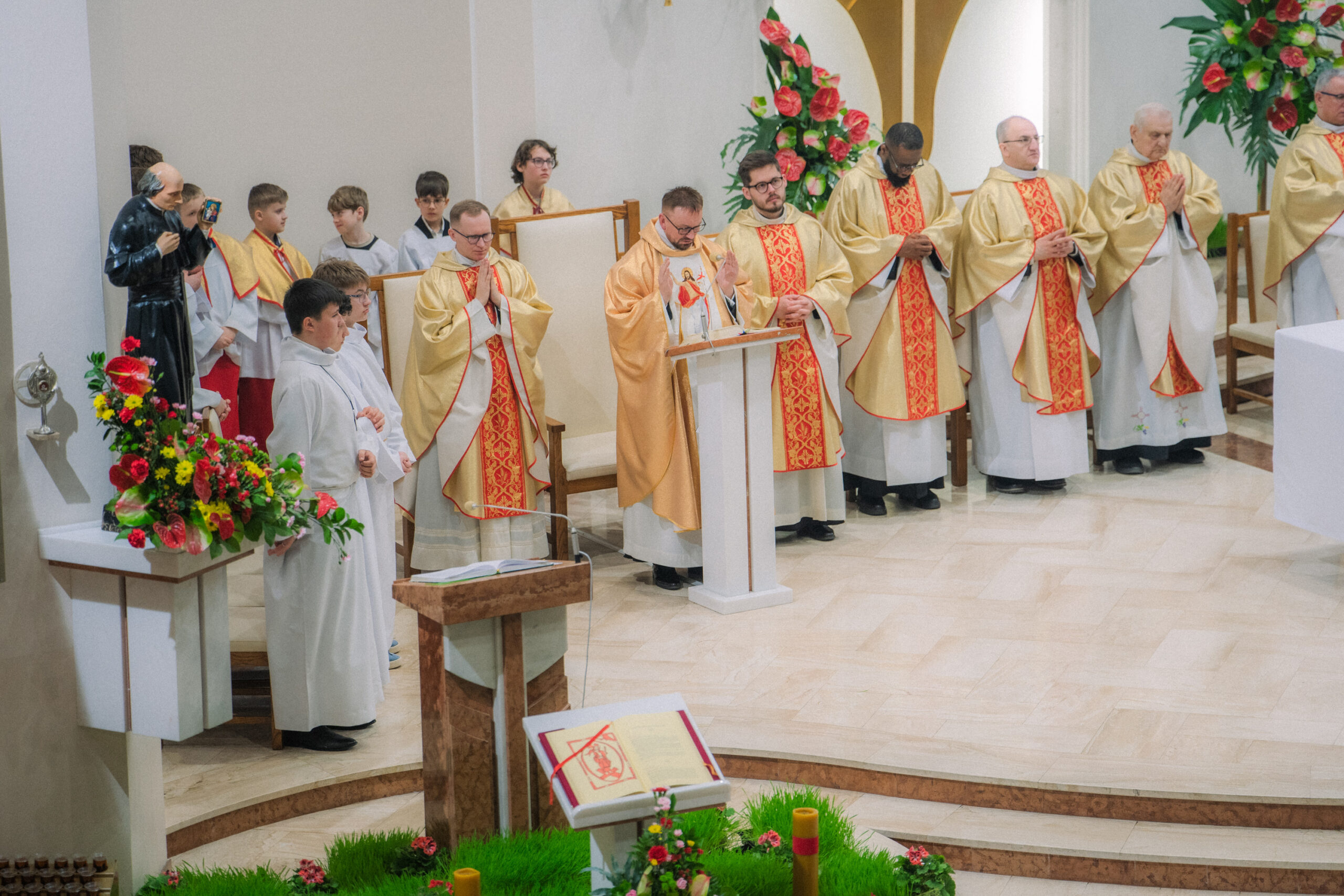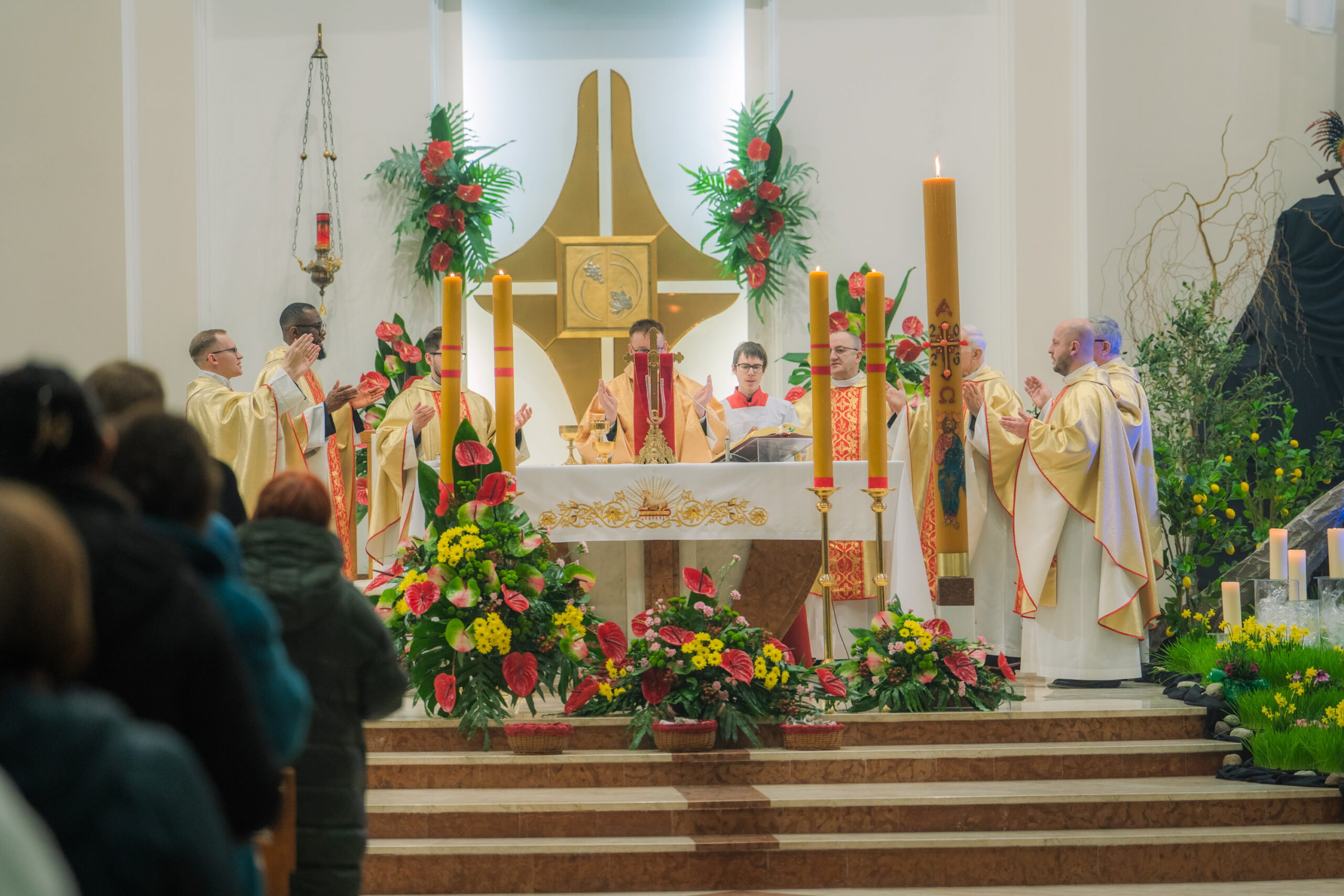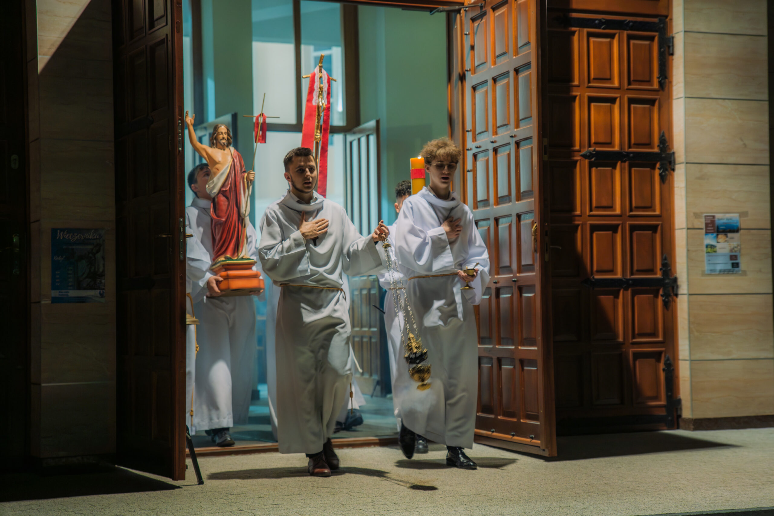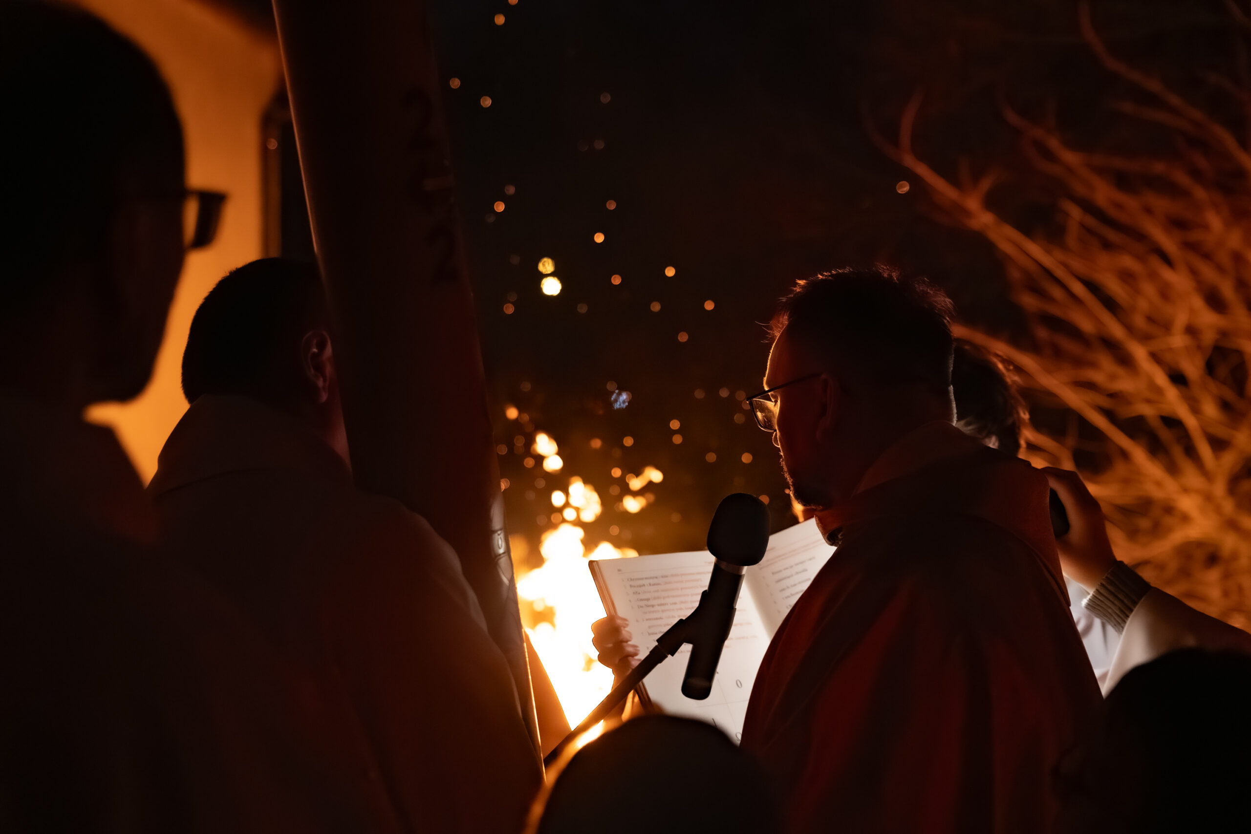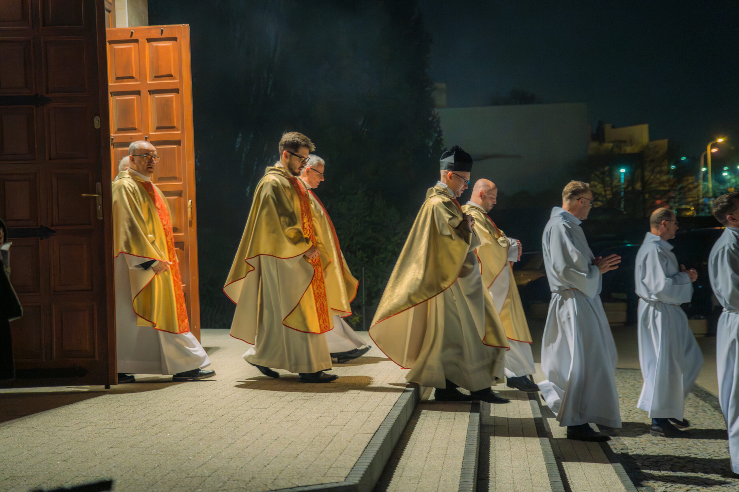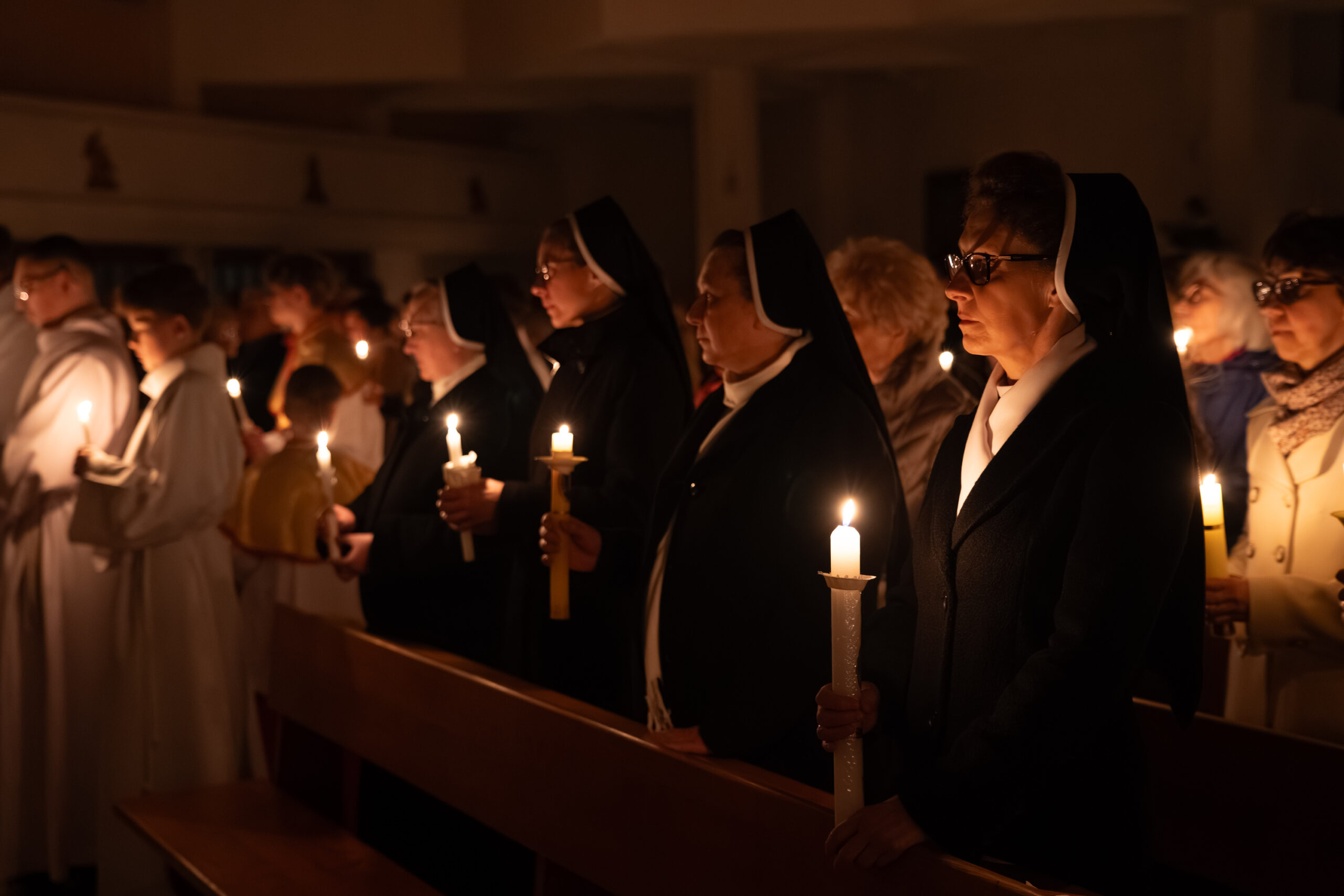 Liturgia rozpoczęła się od obrzędu światła – poświęcenia ognia i zapalenia Paschału, który symbolizuje Chrystusa Zmartwychwstałego, rozpraszającego ciemności grzechu i śmierci. Następnie odśpiewany został przez ks. Dominika Gaładyka, S.A.C., uroczysty Exsultet, czyli starożytne orędzie wielkanocne. Jest to podniosły hymn wykonywany na początku Wigilii Paschalnej, który wzywa całe stworzenie do radości i wychwala Boga za dar zbawienia oraz zwycięstwo Chrystusa nad śmiercią.