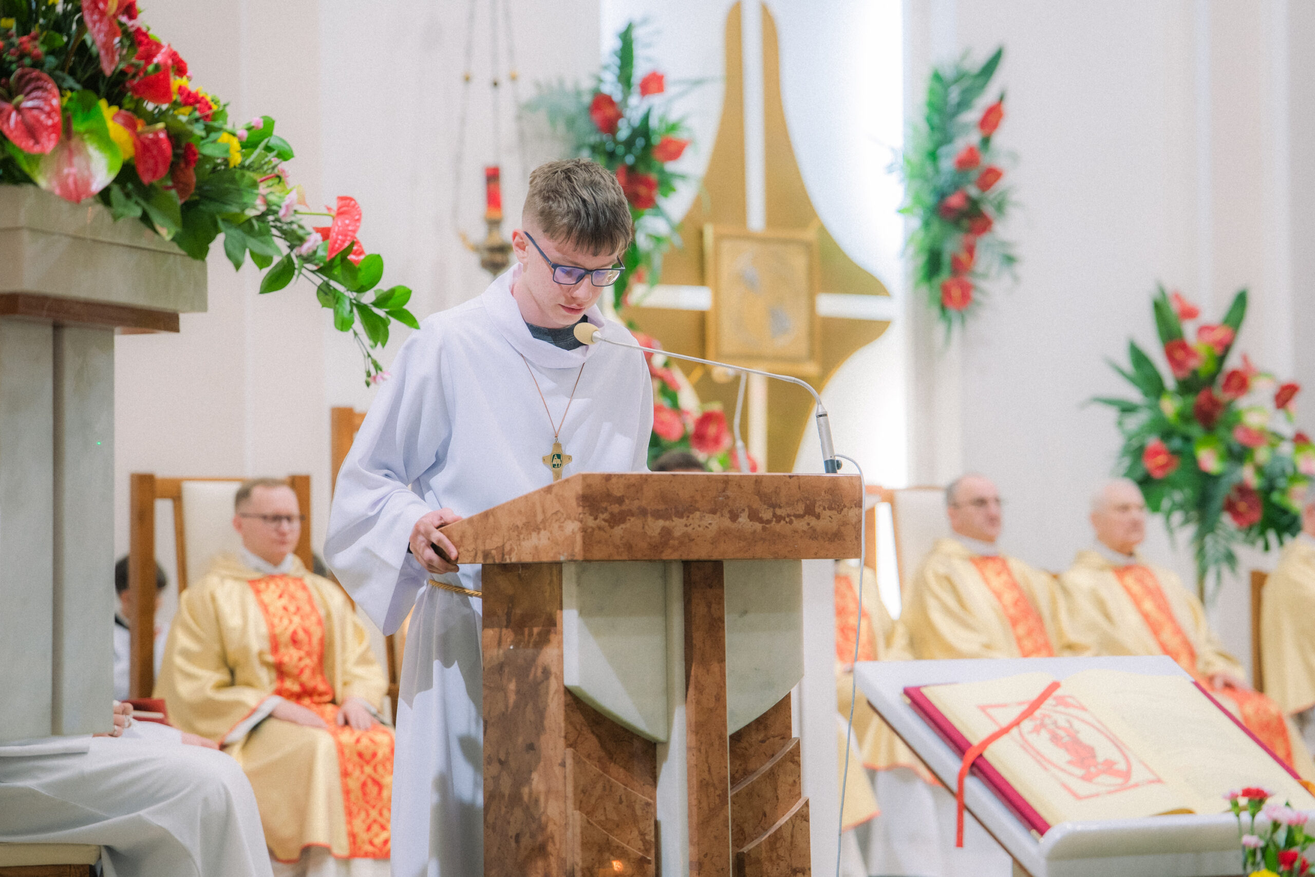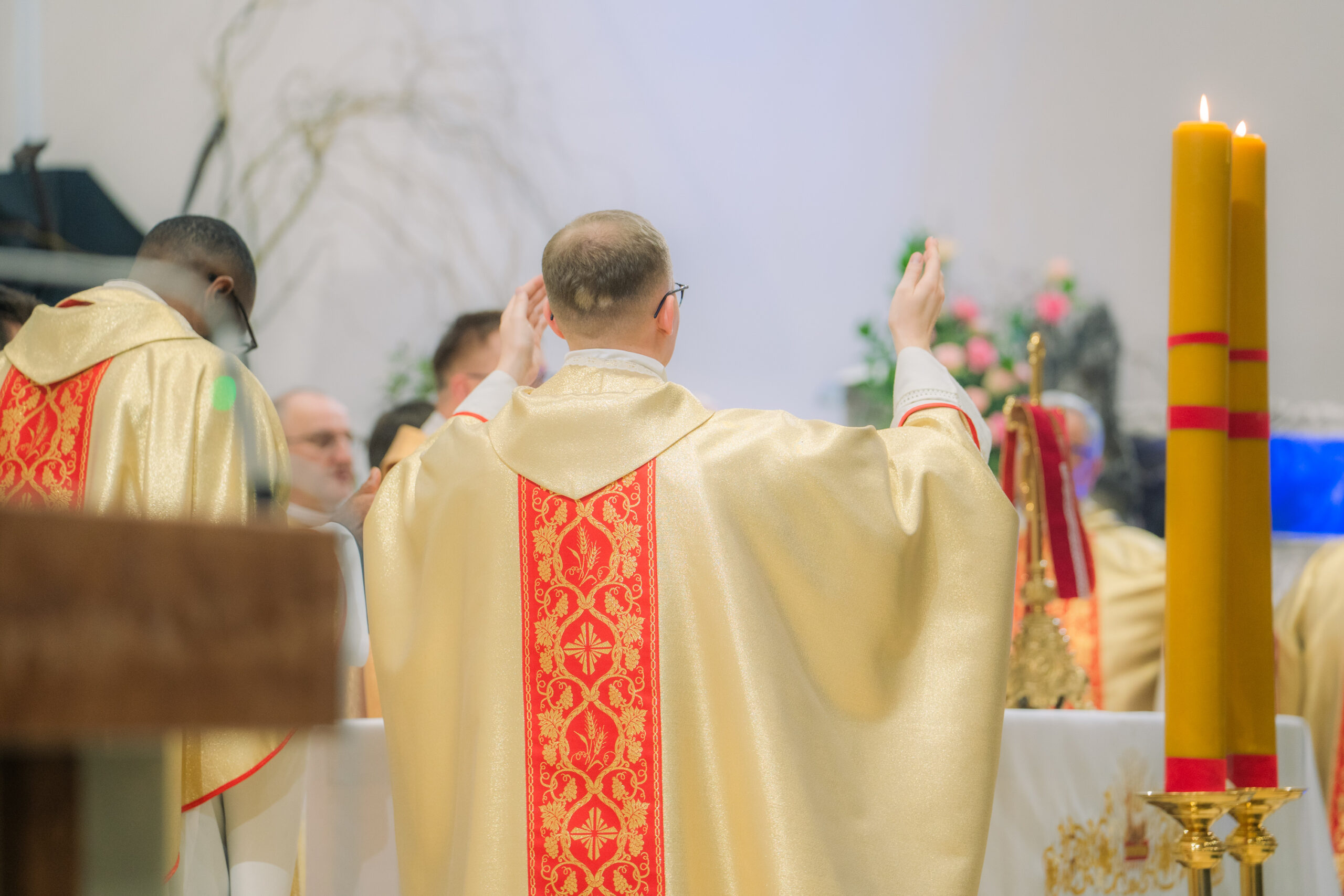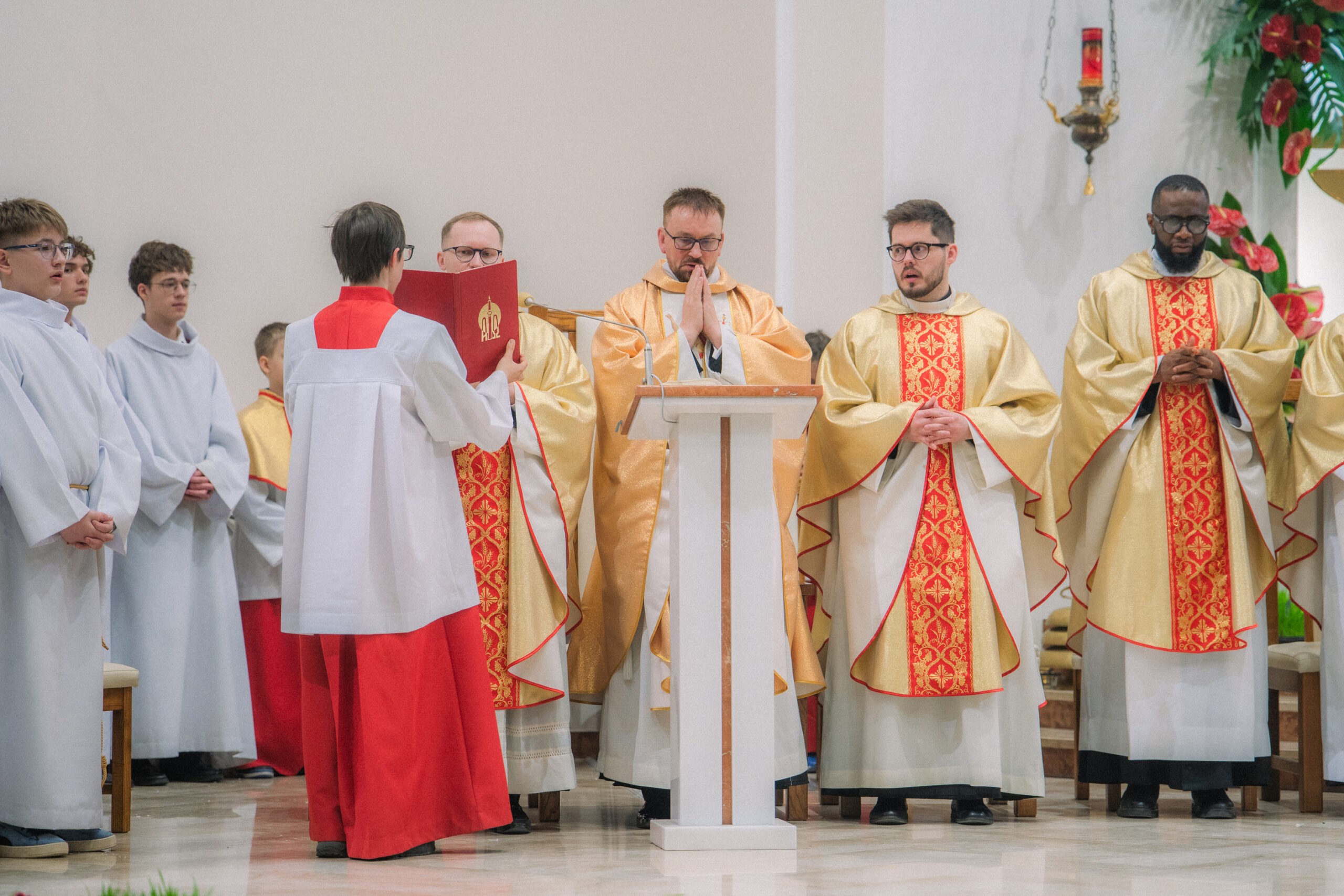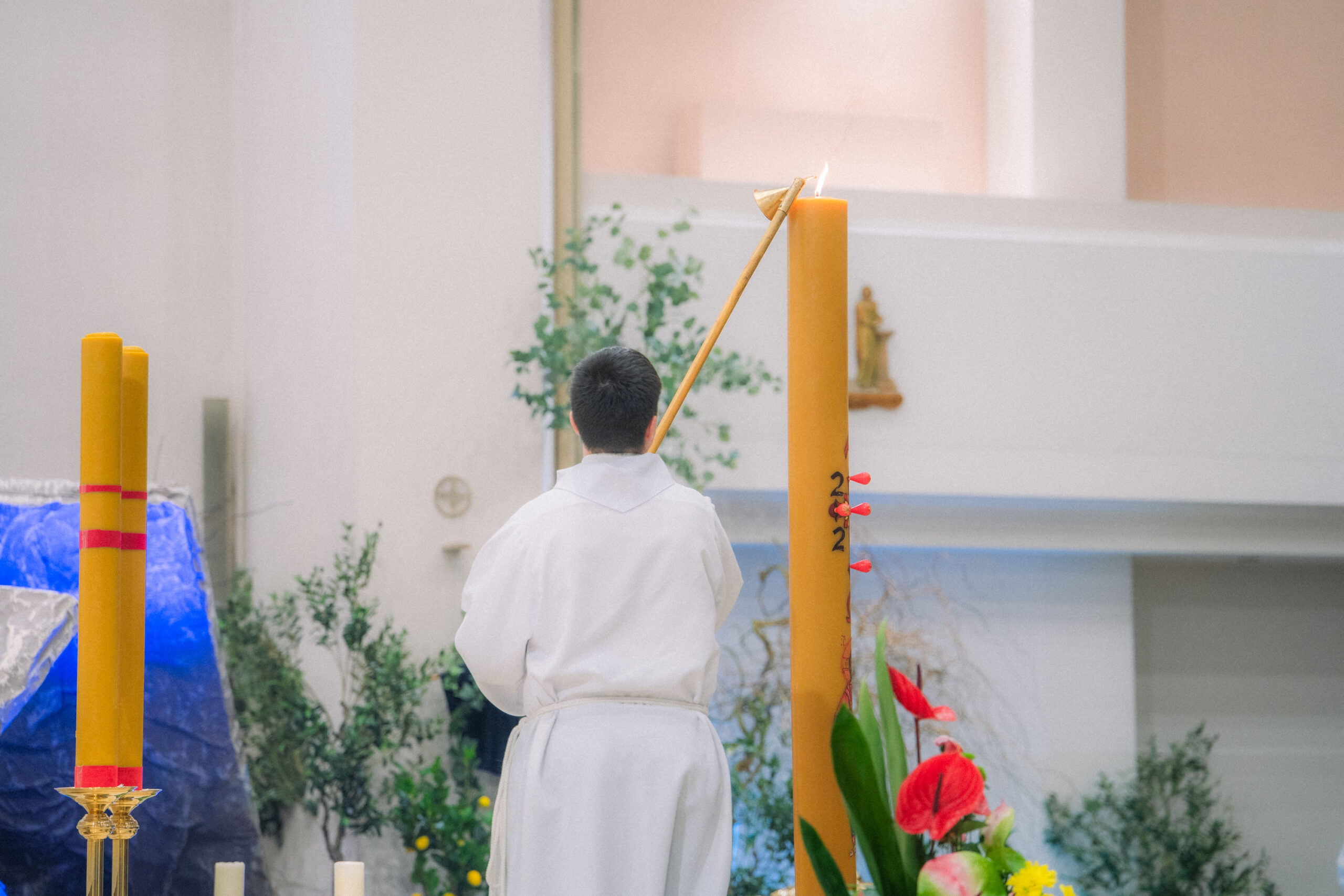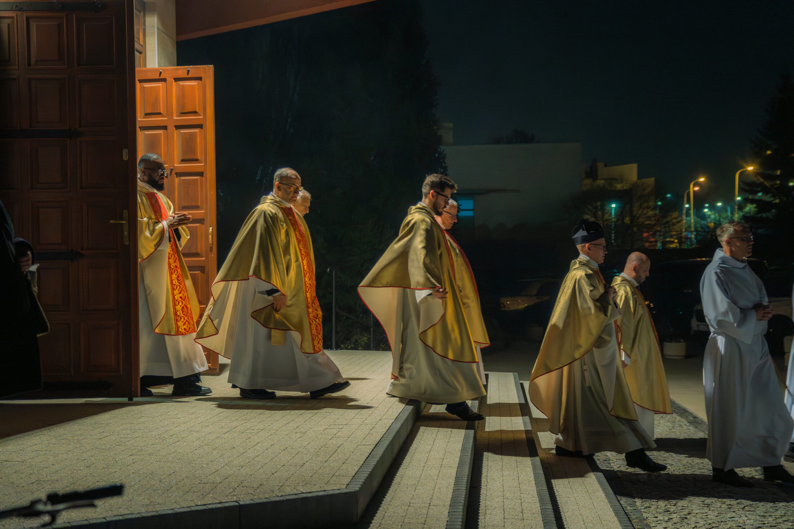 Liturgia rozpoczęła się od obrzędu światła – poświęcenia ognia i zapalenia Paschału, który symbolizuje Chrystusa Zmartwychwstałego, rozpraszającego ciemności grzechu i śmierci. Następnie odśpiewany został przez ks. Dominika Gaładyka, S.A.C., uroczysty Exsultet, czyli starożytne orędzie wielkanocne. Jest to podniosły hymn wykonywany na początku Wigilii Paschalnej, który wzywa całe stworzenie do radości i wychwala Boga za dar zbawienia oraz zwycięstwo Chrystusa nad śmiercią.