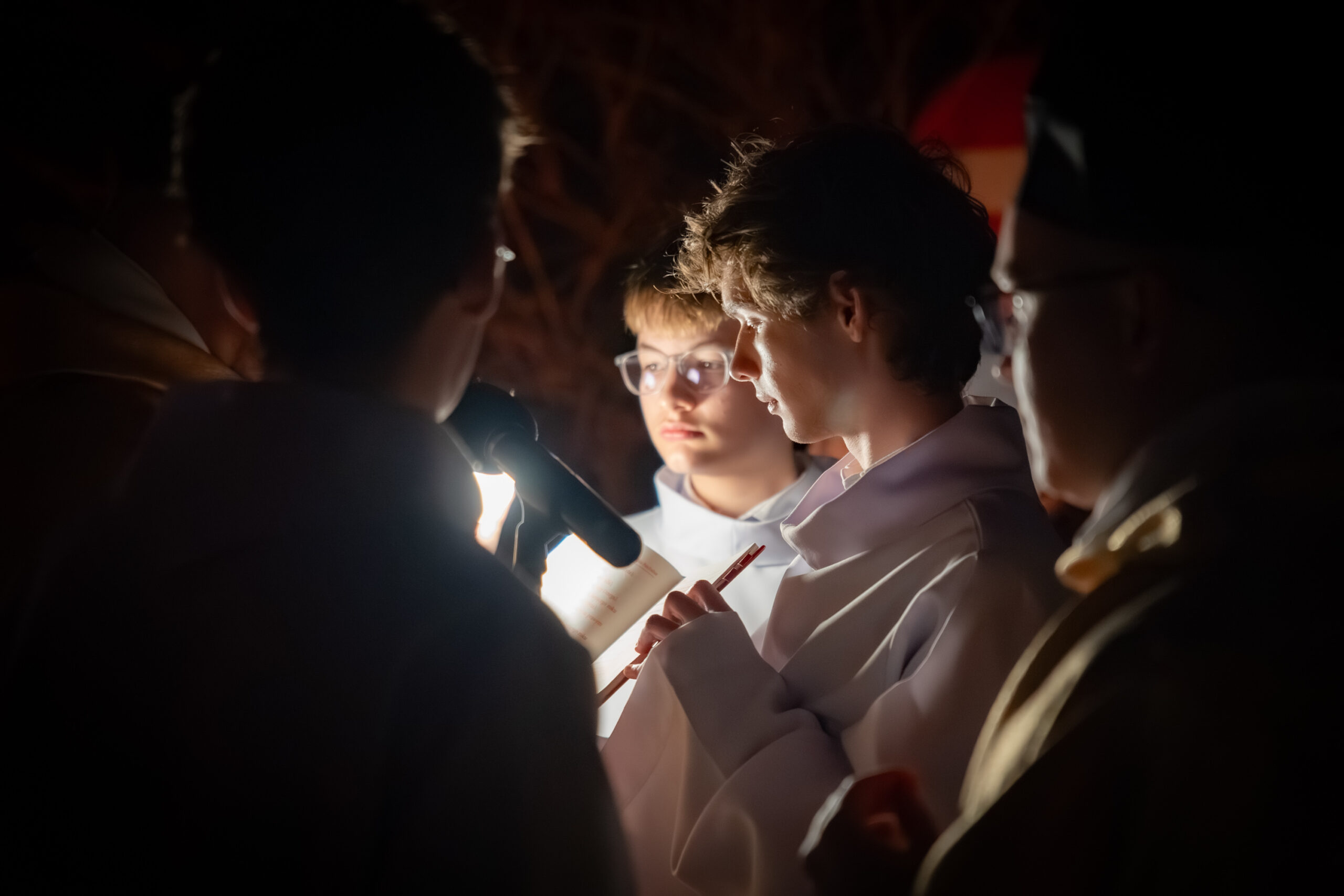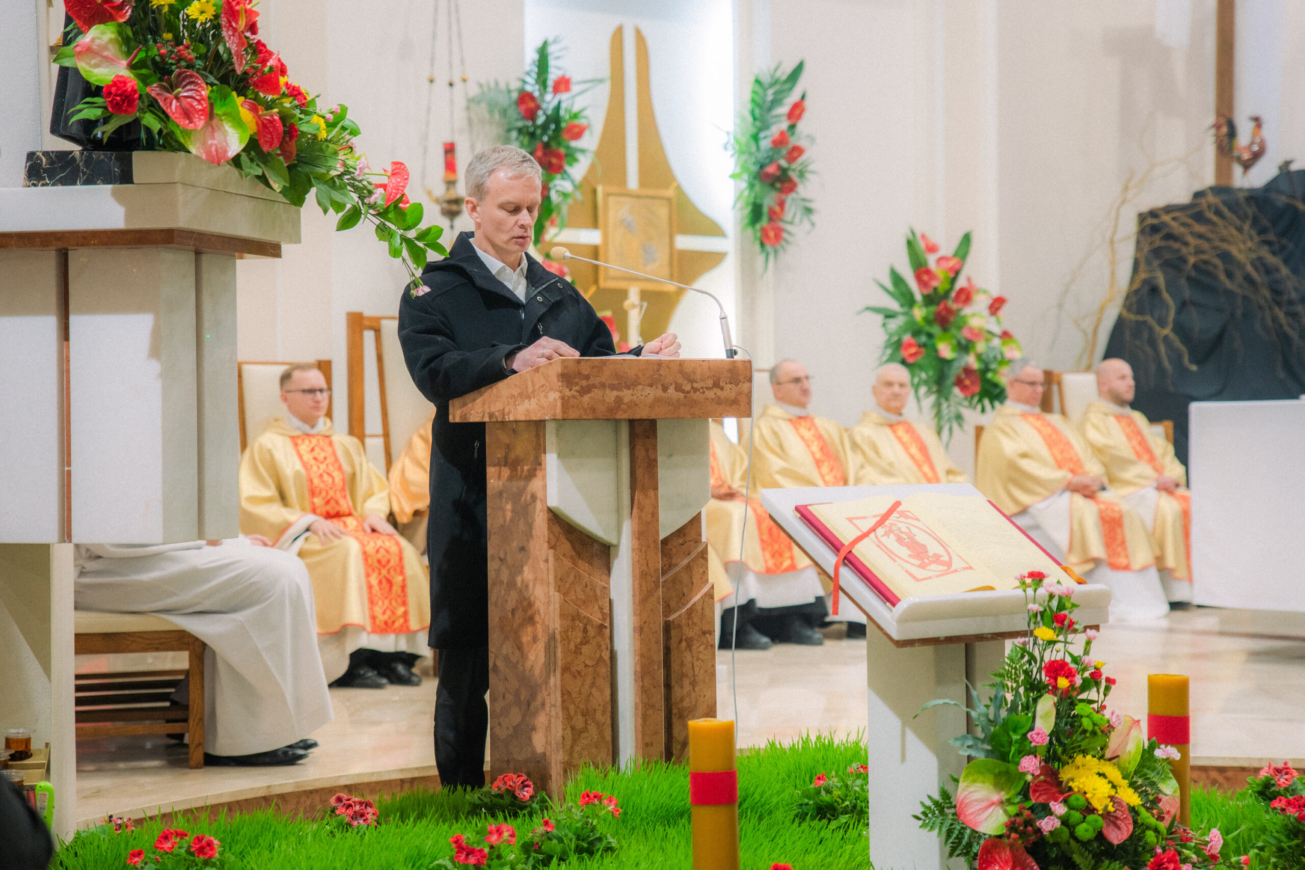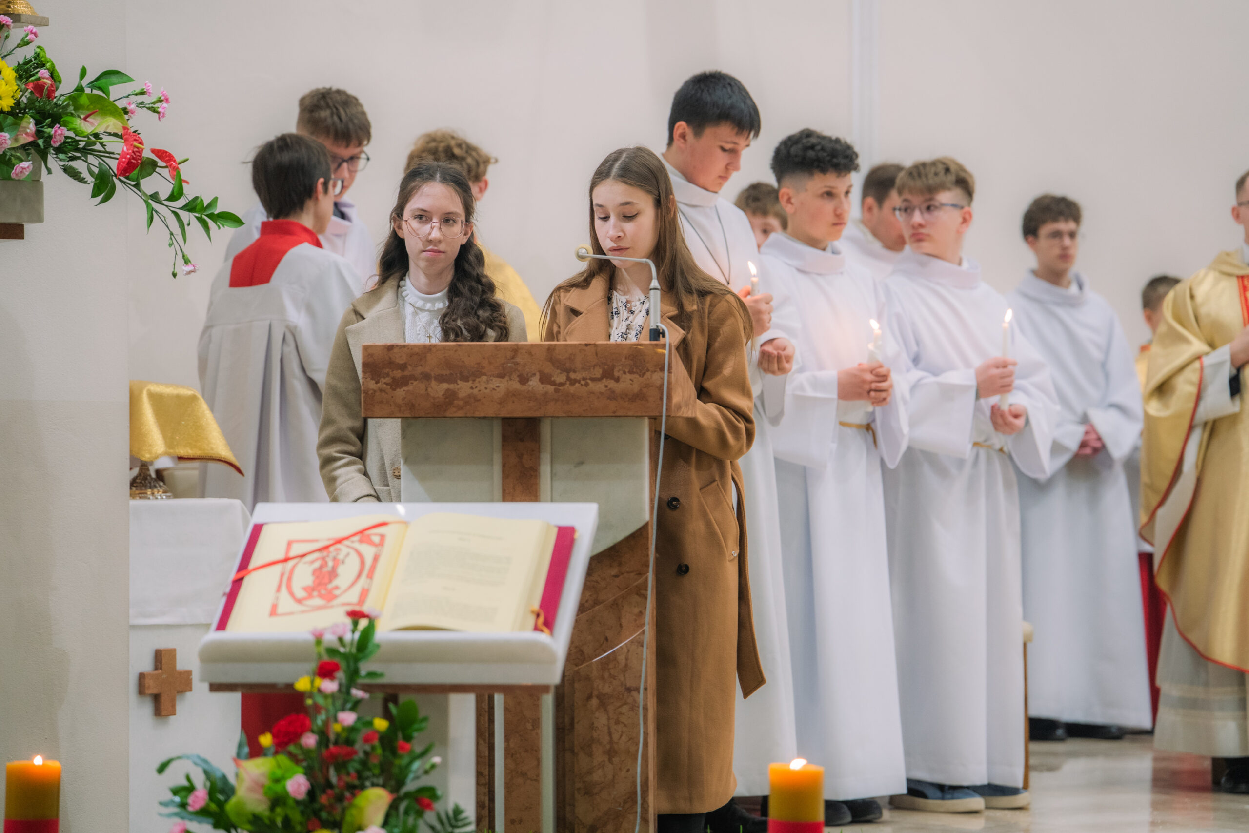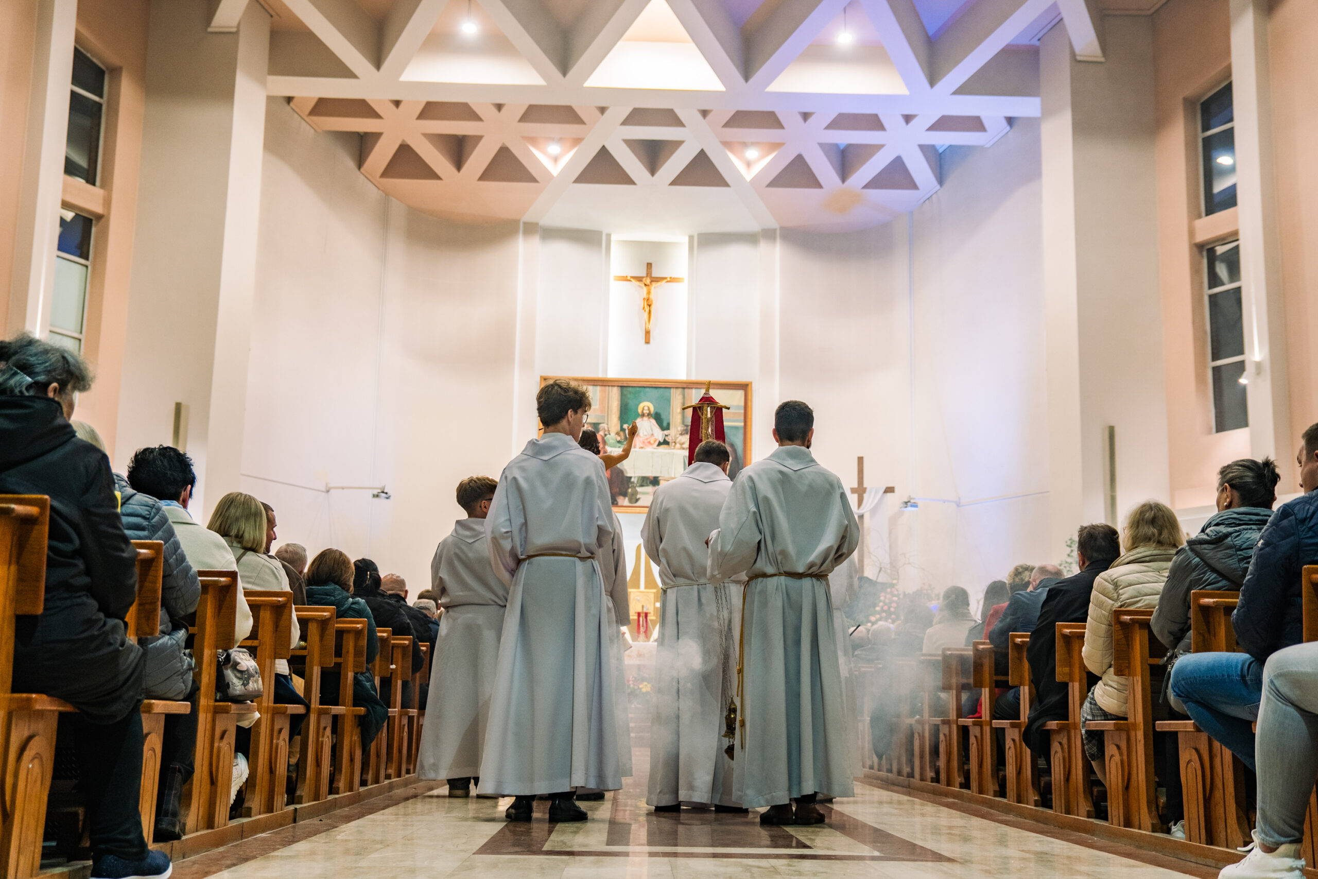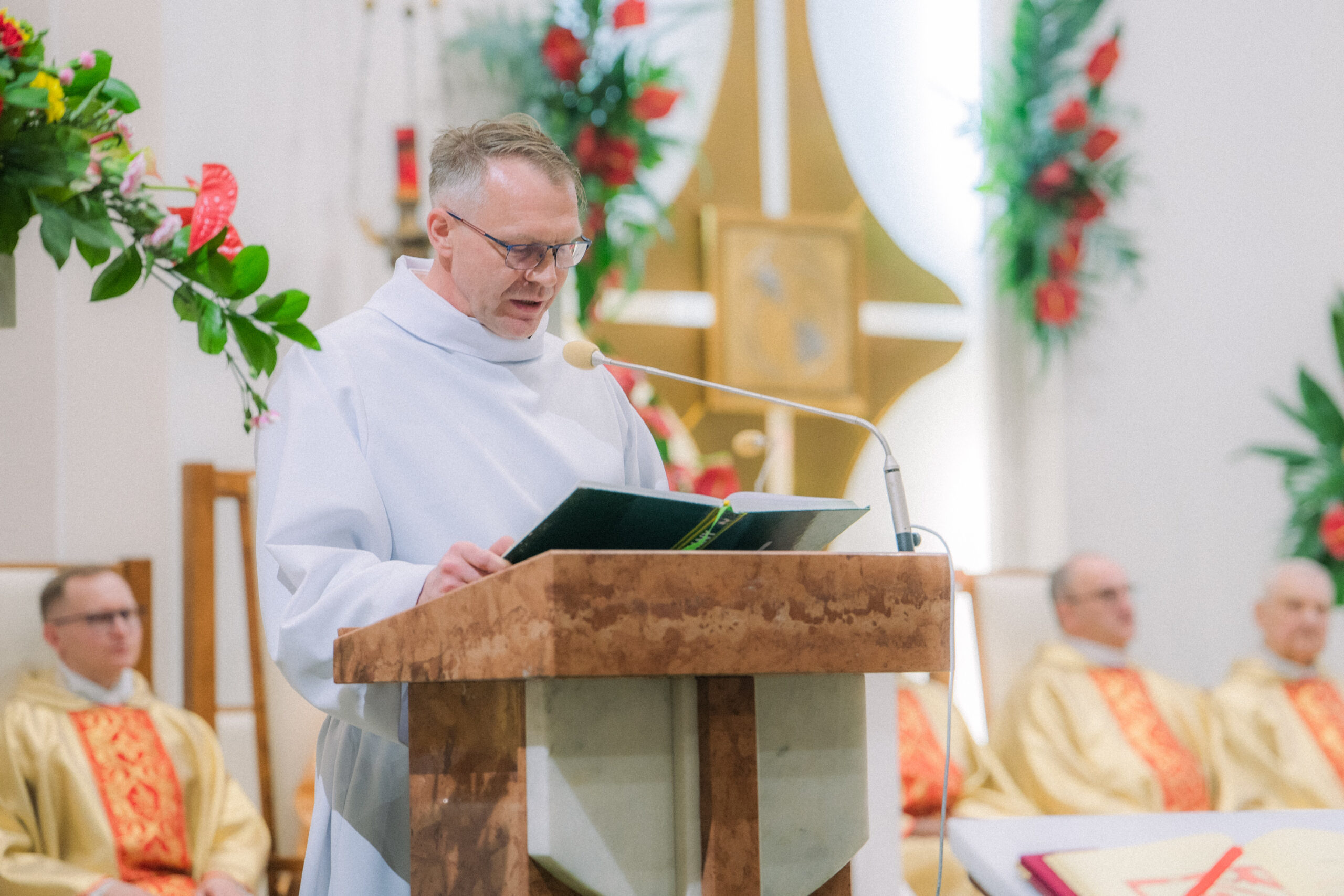 Liturgia rozpoczęła się od obrzędu światła – poświęcenia ognia i zapalenia Paschału, który symbolizuje Chrystusa Zmartwychwstałego, rozpraszającego ciemności grzechu i śmierci. Następnie odśpiewany został przez ks. Dominika Gaładyka, S.A.C., uroczysty Exsultet, czyli starożytne orędzie wielkanocne. Jest to podniosły hymn wykonywany na początku Wigilii Paschalnej, który wzywa całe stworzenie do radości i wychwala Boga za dar zbawienia oraz zwycięstwo Chrystusa nad śmiercią.