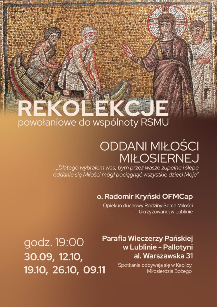 O. Radomir Kryński, O.F.M. Cap., wraz ze wspólnotą Rodzina Serca Miłości Ukrzyżowanej (RSMU) zapraszają na rekolekcje „Oddani Miłości Miłosiernej”.